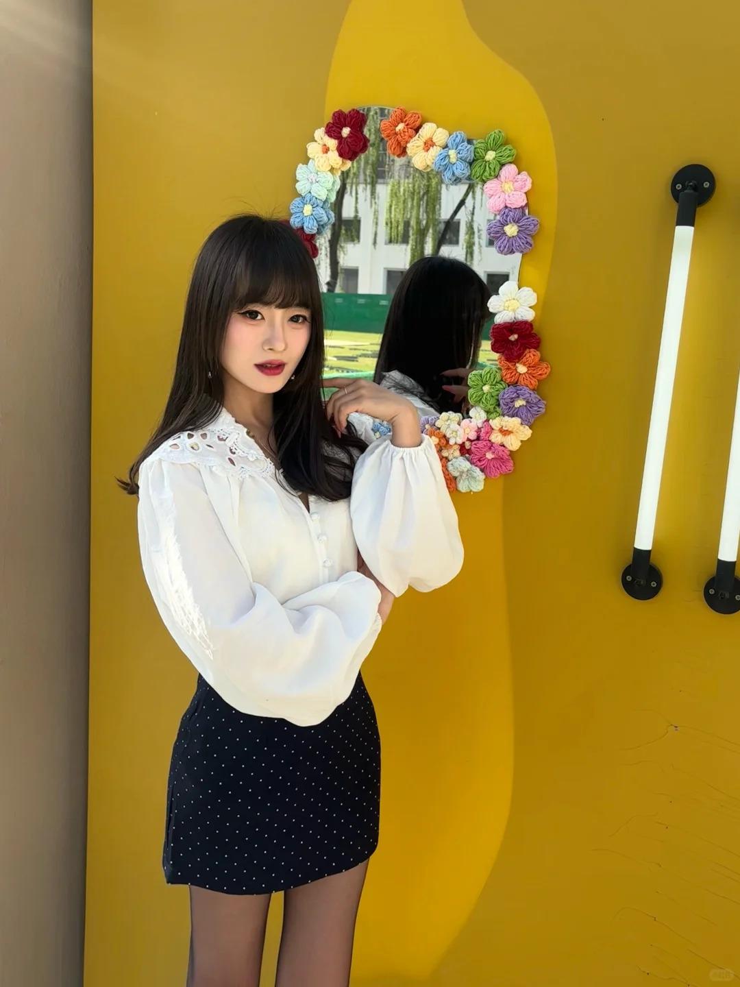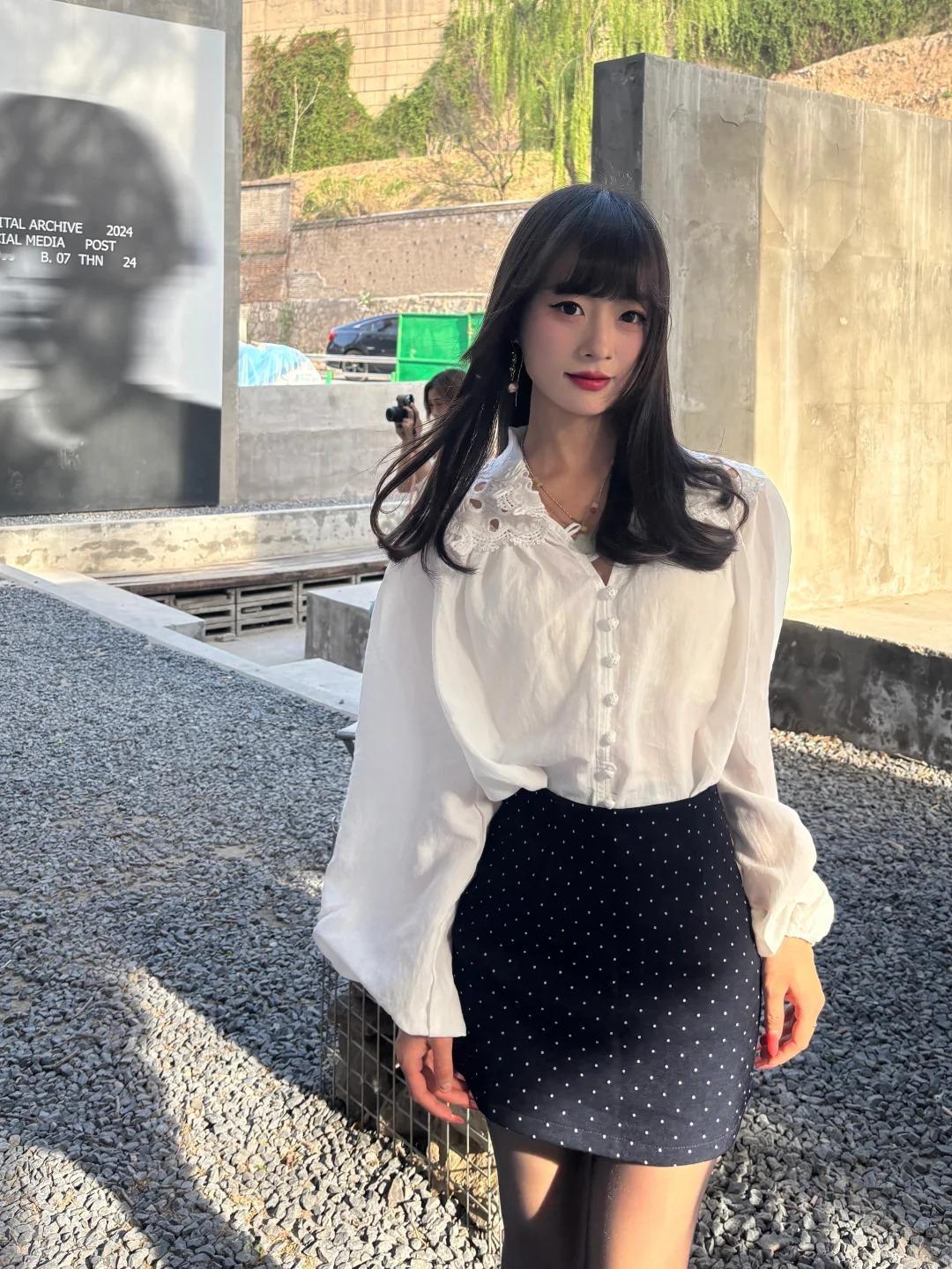 ☀️周末晒太阳|温柔韩系姐姐风的松弛日常 谁懂啊!被阳光裹住的感觉真的太治愈了✨ 今天穿了软乎乎的蕾丝白衬衫 + 波点短裙,搭配黑丝和小皮鞋,温柔中带点小俏皮,走在路上风都是甜的~ 阳光洒在身上的时候,连影子都变得软乎乎的,这种不慌不忙的松弛感,才是周末该有的样子呀~ 周末穿搭 温柔风穿搭 韩系穿搭 OOTD 阳光是最好的滤镜 甜妹穿搭