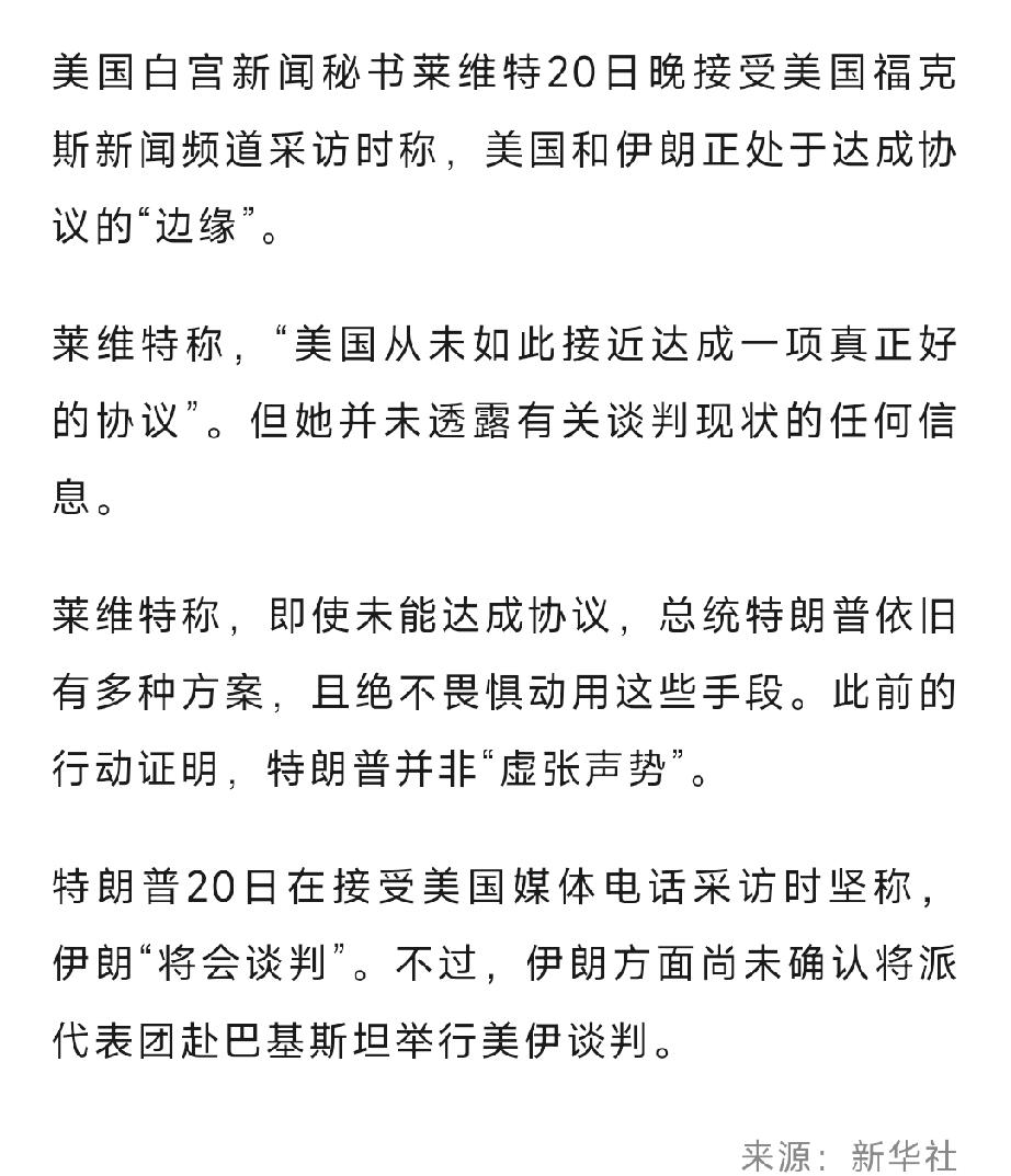 特朗普已经认输了! 4月20日,莱维特说美国和伊朗正处于达成协议“边缘”,即使达不成协议,特朗普总统还有备选的“多种方案”…… 也就是说,特朗普真的不想打了,只是用拖延时间来争取伊朗做出更多让步,特朗普事实上已经认输了。