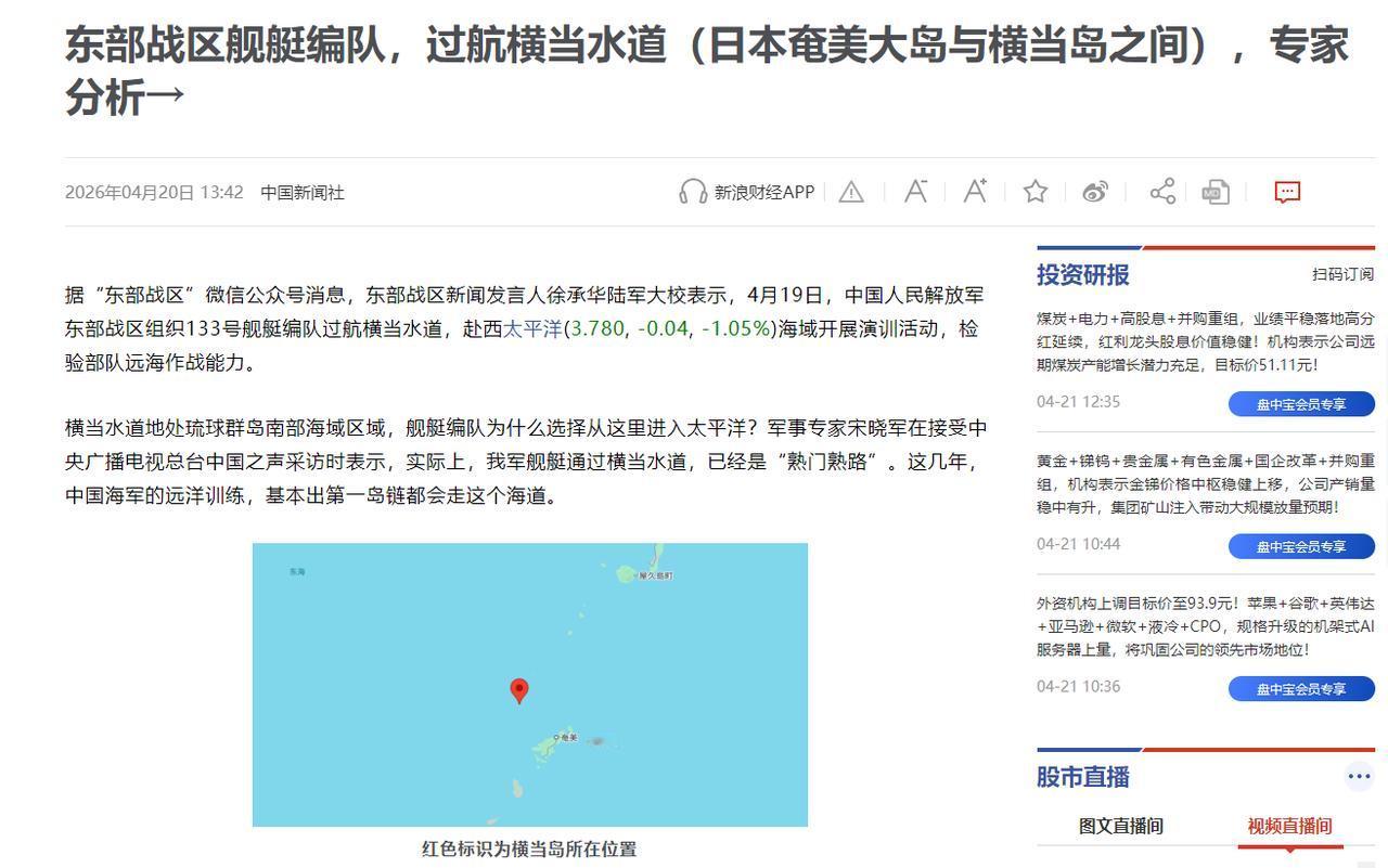 来而不往非礼也!中国海军出手了!4月19日,东部战区133号舰艇编队大胆通过了横当水道,驶向西太平洋开展远洋演训,一时间成为中日海上互动的新焦点。就在此前,日本“雷”号驱逐舰刚刚经过台湾海峡,中国海军以“贴脸回敬”的方式出场,展现了实力,也让这条敏感水道成为舆论热浪中心。 航母、军舰、雷达阵阵,海浪翻滚。表面看上去风平浪静,实际上,每一寸海域都藏着大国角力的火花。 中国海军这次的“过境”横当水道,坐标直接选在了奄美大岛和横当岛之间。横当水道最宽有80公里,说远不远,说近也称得上别人家门口。关键是这是一条进出第一岛链的咽喉要道。 日本刚在台海“亮个相”,中国这边速度跟上,看似你来我往、礼尚往来,实则各有想法。海上的博弈,有时候更像打太极拳,谁拳风更强,谁步子更猛,谁就有话语权。 故事的起点不只在这天。此前,日本“雷”号驱逐舰才刚在台湾海峡刷过存在感。网上不乏“日方是来做什么动作?想测试中国反应?”的讨论。 现实不是你单方面表演完就结束。中国东部战区火速整合编队,从日本眼皮子底下最要紧的水道闯一遭,谁都明白这是明晃晃的信号:“你敢来试探,我就正面亮剑。” 来而不往非礼也,实力是最硬的底气。大海辽阔,话语权一半靠船票,一半靠本事。海上这个“请你吃席”,主人面子不能丢。 中国海军编队演训比拼的不只是胆量。每一次“过道”都是对远海机动能力、舰队协同、武器系统、补给续航的全方位检验。可不是意气之争那么表面。 中国舰队能轻松穿越横当水道,证明了什么?说明我们不仅敢于在高敏感地段亮相,更有实力保障舰队安全自如地往返。这才是军事实力的真正体现。 这类“你来我往”的场景,近年屡见不鲜。比如2023年,中国海警编队靠近钓鱼岛,日方连夜拉响警戒,第二天中国媒体公开图片,把场面传遍网络。甚至菲律宾近年来多次尝试在南海“刷刷脸”,结果时常被中国海上力量惯性回击。 还有人联想到美国航母多次在南海、东海搞所谓“自由航行”,中国驱逐舰与其“擦肩而过”、全程监督的画面比比皆是。 本事要摆开,肌肉得亮出来。很多国家都在比气场,但中国的“稳、准、快”这几年真让不少老对手变被动。 说到这里,其实值得静下来想一想,这种看似针尖对麦芒的行动,传递的深意不仅仅是较劲。 以前,中国海军最常被贴的标签是“黄水海军”“近岸游弋”,离岸远了底气就弱。但这10年来,随着技术进步、舰队成型,咱们开始能围绕西太平洋、南海、印度洋多个方向开展远洋演训。说直白点不是一船一舰去玩票,是真正有成体系的远海作战能力了。 这对地缘格局的影响很直接,以往别人说“第一岛链”屏障,咱们现在则主动打通“出口”。几年前犯担心别人卡咱脖子,现在自己能伸手试探对方底线。主客易位,说的就是这种气势变化。 能力本身就是最好的国际语言。你连出海都畏手畏脚,谁理你说什么和平?你能连续远洋演练、逆风也能前进,对手自然收起小算盘。舆论场上讲一千道一万,不如舰队用航迹去画新地图。 中国海军这类“过道”行动,老实讲背后的褒贬不一,有人觉得提气,有人担心刺激对手”但放在国际大棋局里看,主动“露脸”本身就是重要信号。长期不展现存在感,别人就会轻视你的实力。动不动硬刚,反而可能给自己增加不必要的风险。 中国现在的做法,属于那种“有理有据,明明白白把规则用起来”。公开说训练,就堂堂正正地训练。 国际海域本就自由通行,有本事你也来。但在能力允许范围内巩固自己的战略要道,这本身是一个海权国家成熟的做派。 以前大家说“中国只会守门,不敢开门”,但今天谁还敢用老眼光看中国的蓝水力量?时代变了,咱们有东风快递、有现代海空联合编队,保家卫国也得有底气走出去。关键是稳中带进,不能只懂纠结一城一地的得失。 你说过一次横当水道就能决定什么大势?未必。但这种“置之死地而后生”的远洋锻炼,会让中国海军越来越会用现代化、开放的方式处理风浪和博弈。这是长远安全的大底牌,也是全球视野应有的胆魄。 国与国之间,表面风平浪静,暗流才是真实大海。谁能在暗流中稳健穿梭,谁才能立于不败之地。这次横当水道一过,信心和决心就已经先体现在行动上了。
