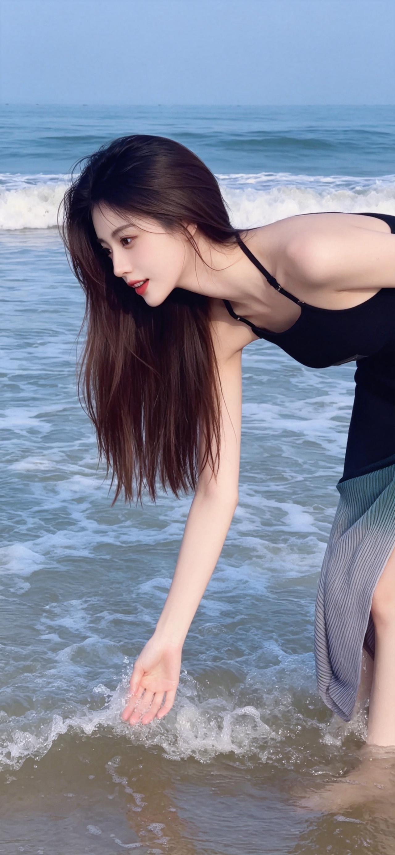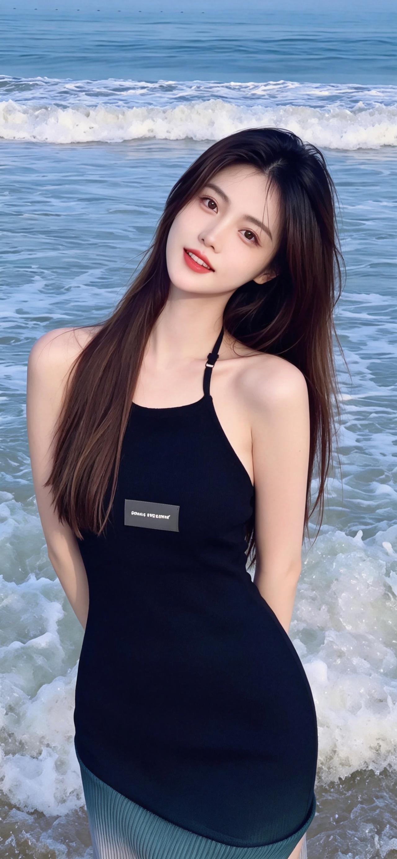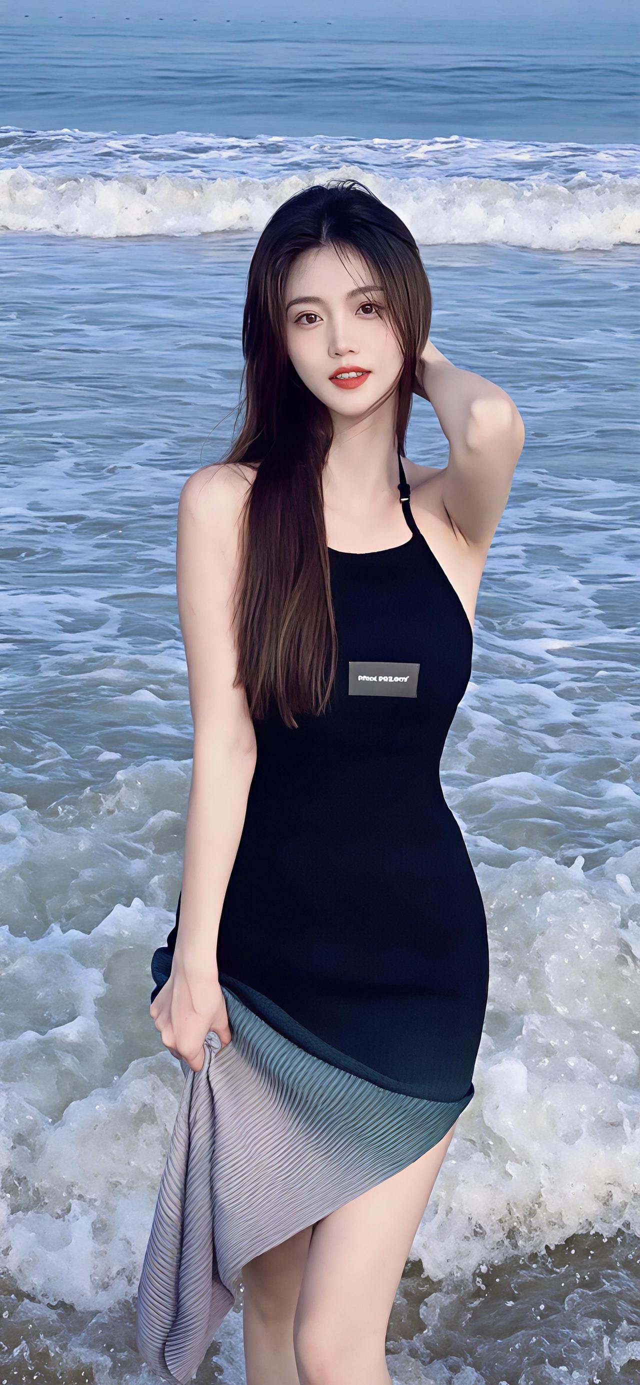 🌊 海边纯欲风 海边氛围感|黑裙与海浪的浪漫邂逅 蓝调海浪作衬,黑色挂脖连衣裙勾勒出曼妙曲线,挂脖设计凸显肩颈线条,渐变裙摆增添灵动。长发被海风轻拂,笑容清甜治愈,将纯欲与温柔拿捏得恰到好处,海边氛围感拉满。 美女分享 海边随拍 纯欲天花板