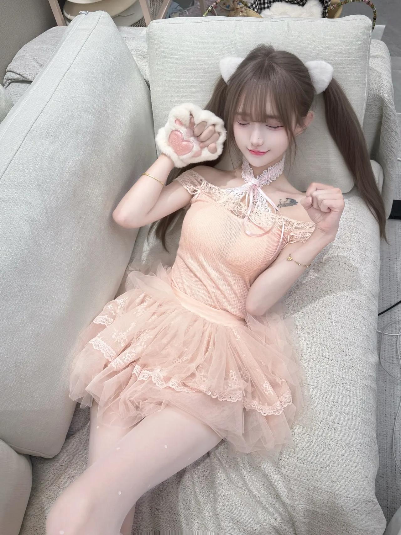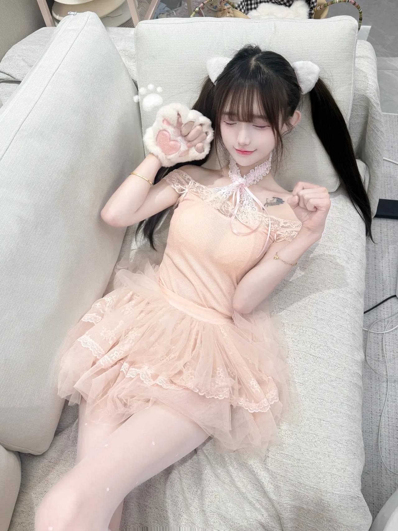 穿成小猫咪躺沙发,被闺蜜说像“从动漫里走出来的猫娘”!双马尾+猫耳发饰+粉爪手套,连wink都带着奶味~蕾丝边吊带裙+透纱袜,甜到心巴上! 猫系少女 甜妹穿搭 双马尾造型 动漫感写真
