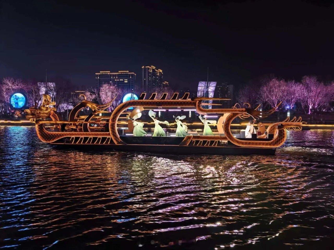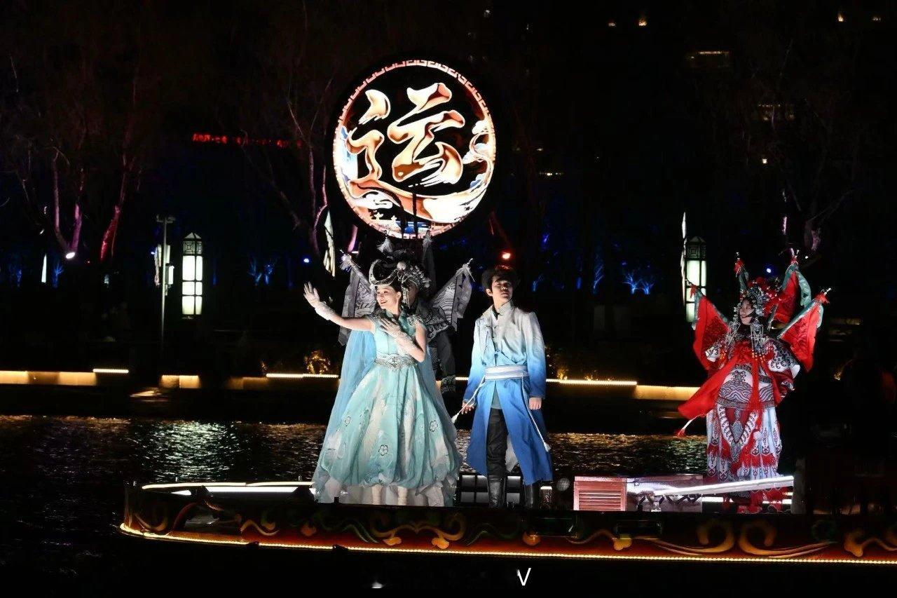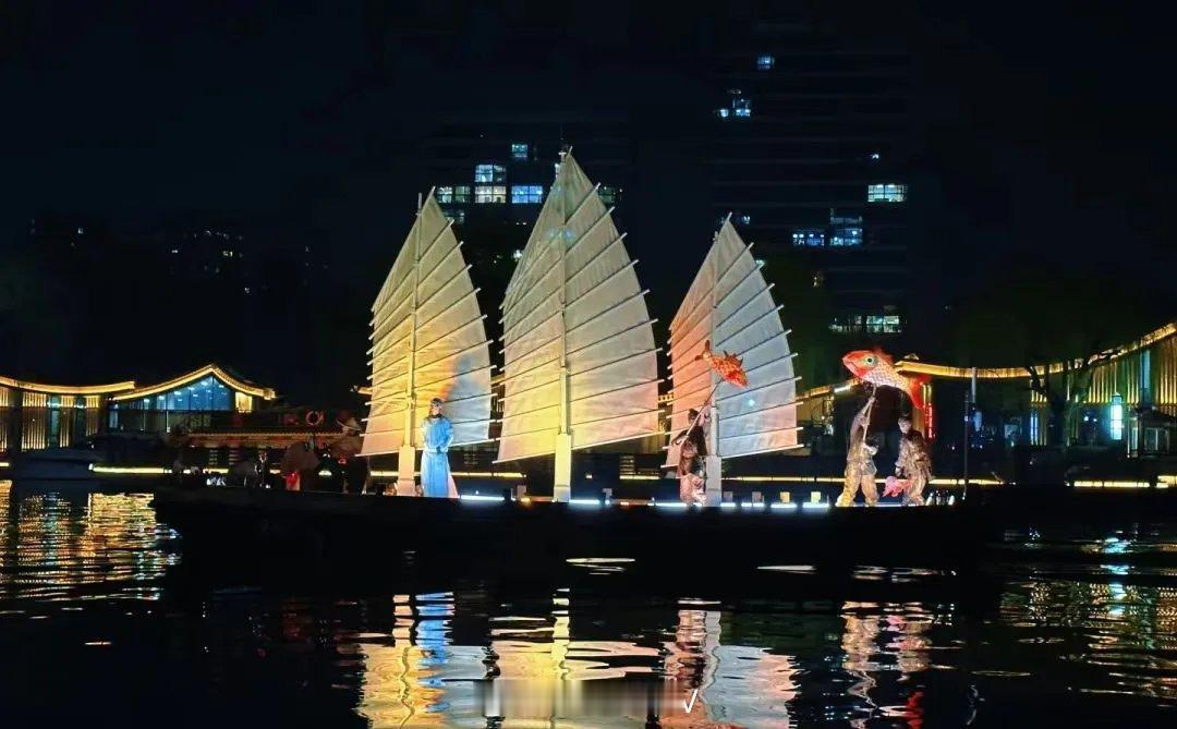 3.5公里实景舞台,50分钟沉浸式体验。更重磅的是,特邀韩美林大师亲自设计,首创“运河龙船”“五福月”“绿水青山”等水上光影雕塑,意境十足,韩美林还亲笔题写了“运上行”三字。