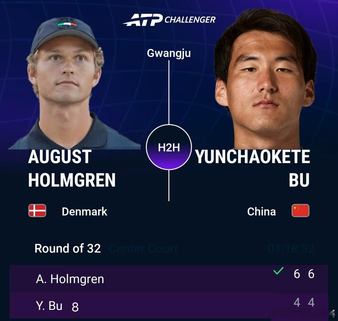 ATP挑战赛 光州站首轮,8号种子布云朝克特以4-6 4-6不敌丹麦选手霍姆格伦,无缘晋级第二轮。