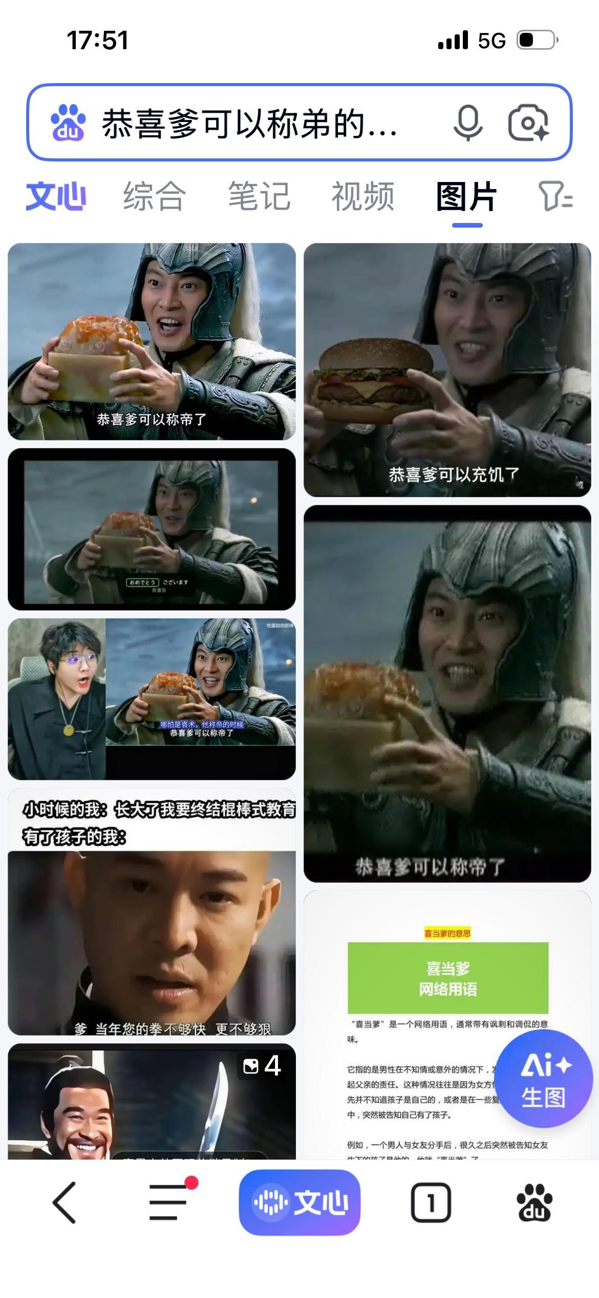 我想要搜图1,就在百度搜了台词,得到了图2。我又看了看,百度提示了一个错别字版。一搜,好多。百度不许称帝,百度更懂中文。