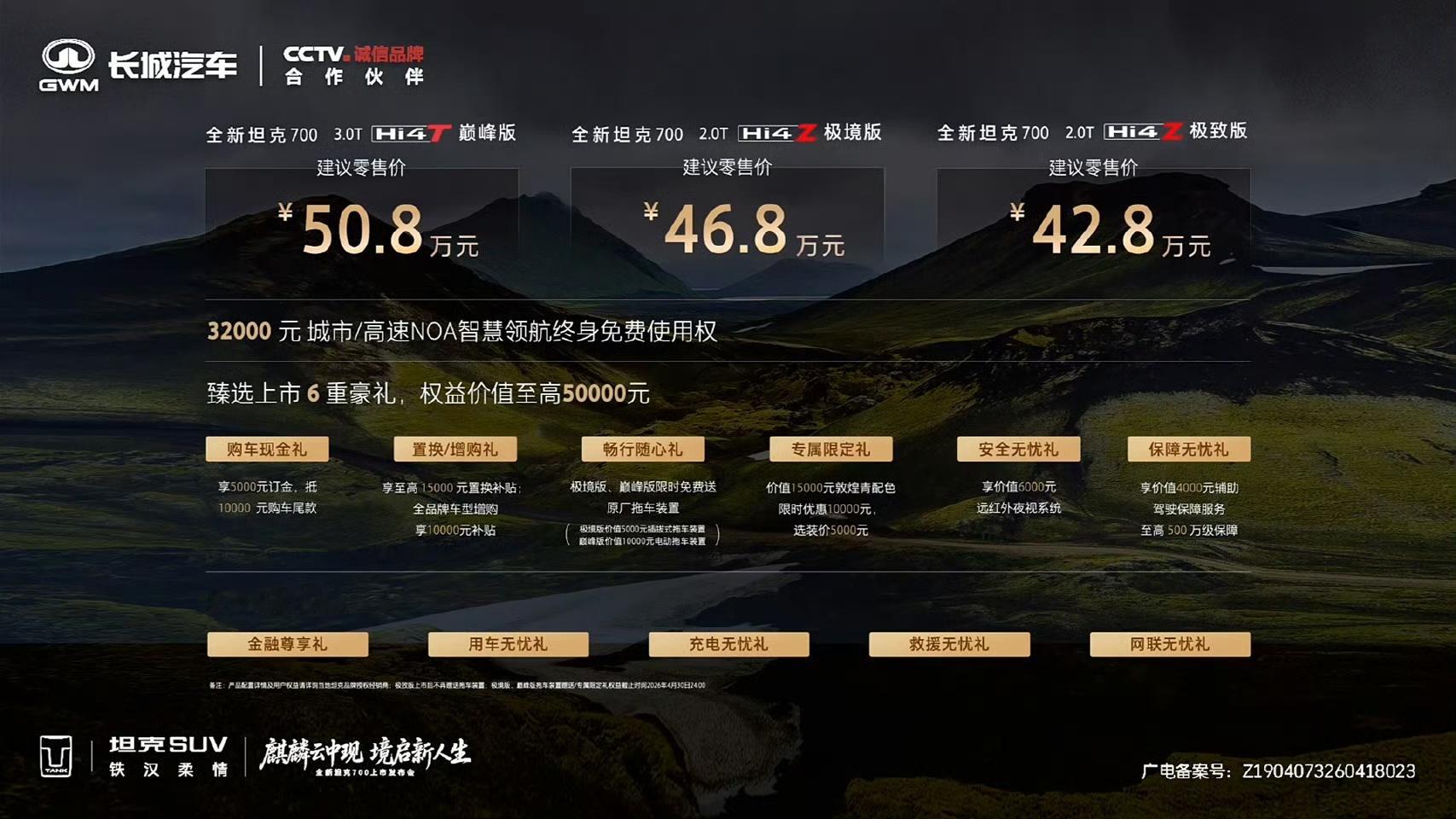全新坦克 700 昨天正式上市了