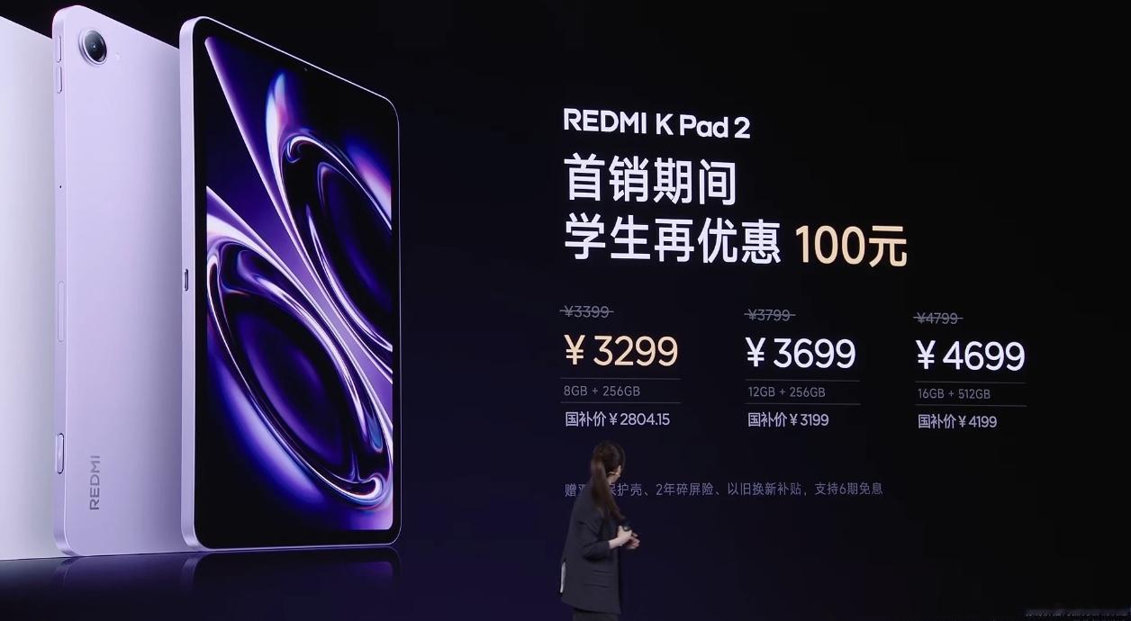 REDMI K Pad 2小尺寸游戏平板的价格也出来了,首销优惠200,3399元起,学生认证再额外优惠100,叠加国补之后到手是2804.15元起。 真的太红米了!价格屠夫!