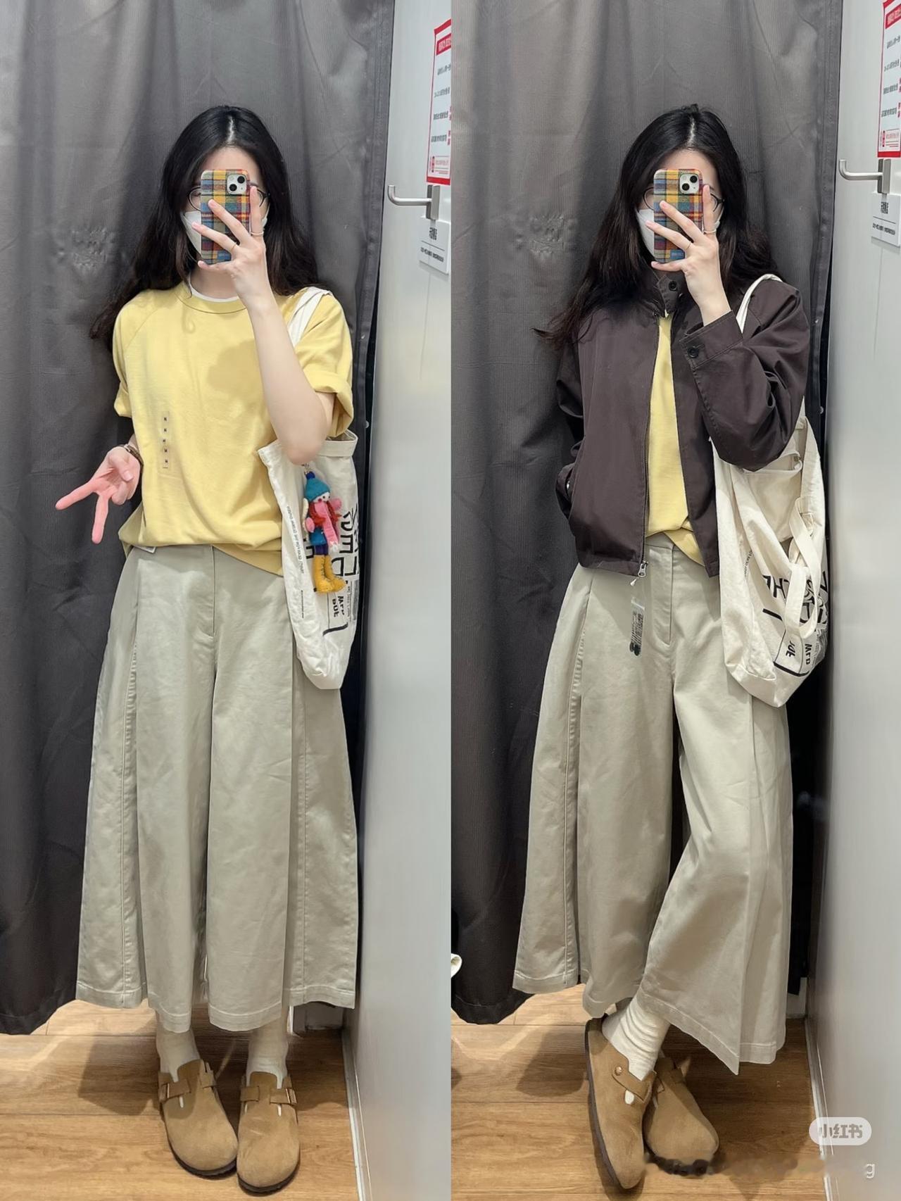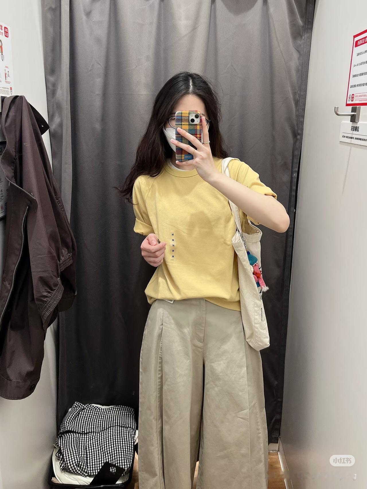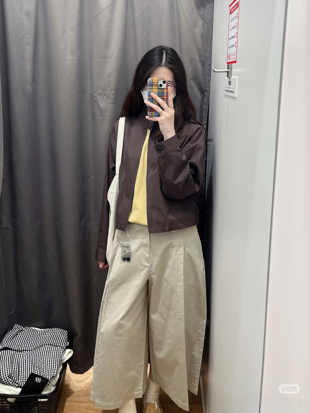 🍋优衣库这件短夹克咖色好像也不错~ 好久没逛男装区,发现一件颜色美丽的T恤~黄色穿起来还是蛮显白的! 尝试了这件夹克的咖色,搭神裤意外的还不错,有入深色的姐妹嘛🙋♂️