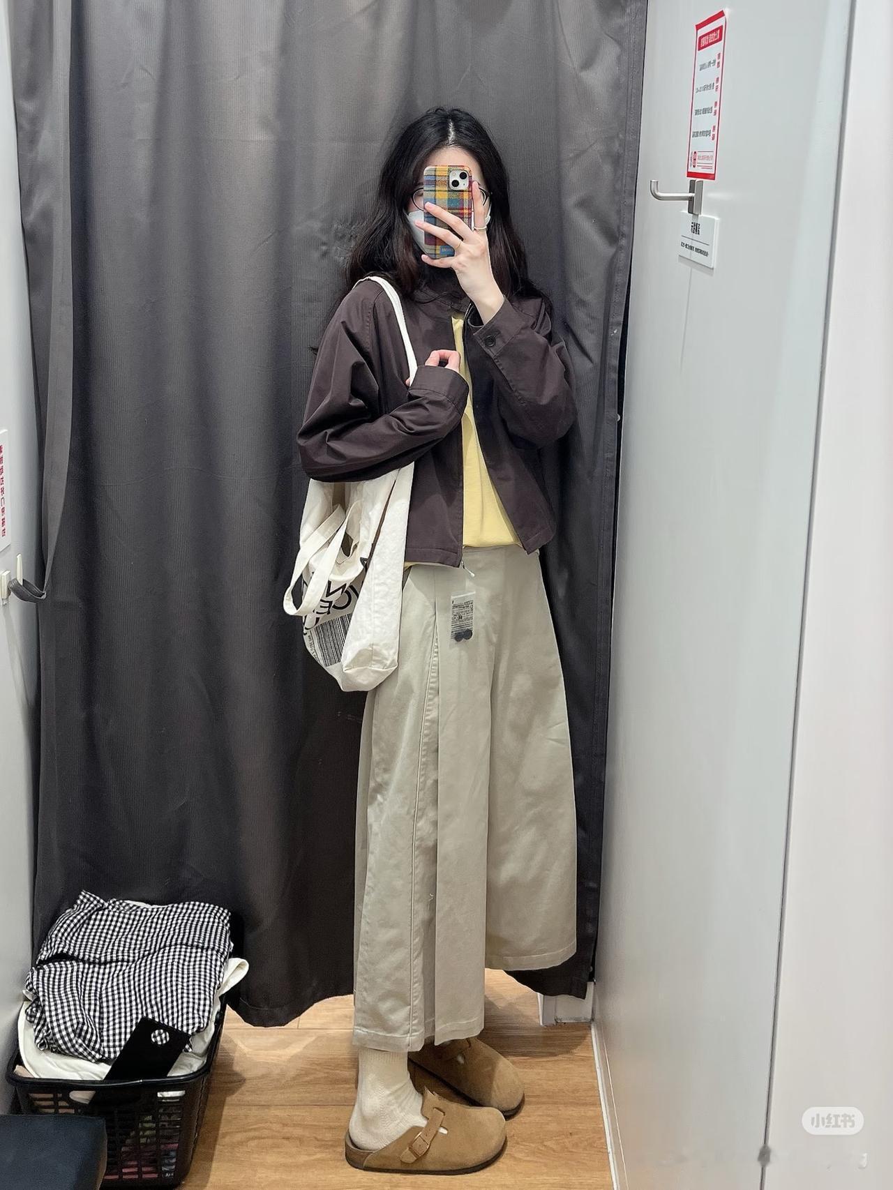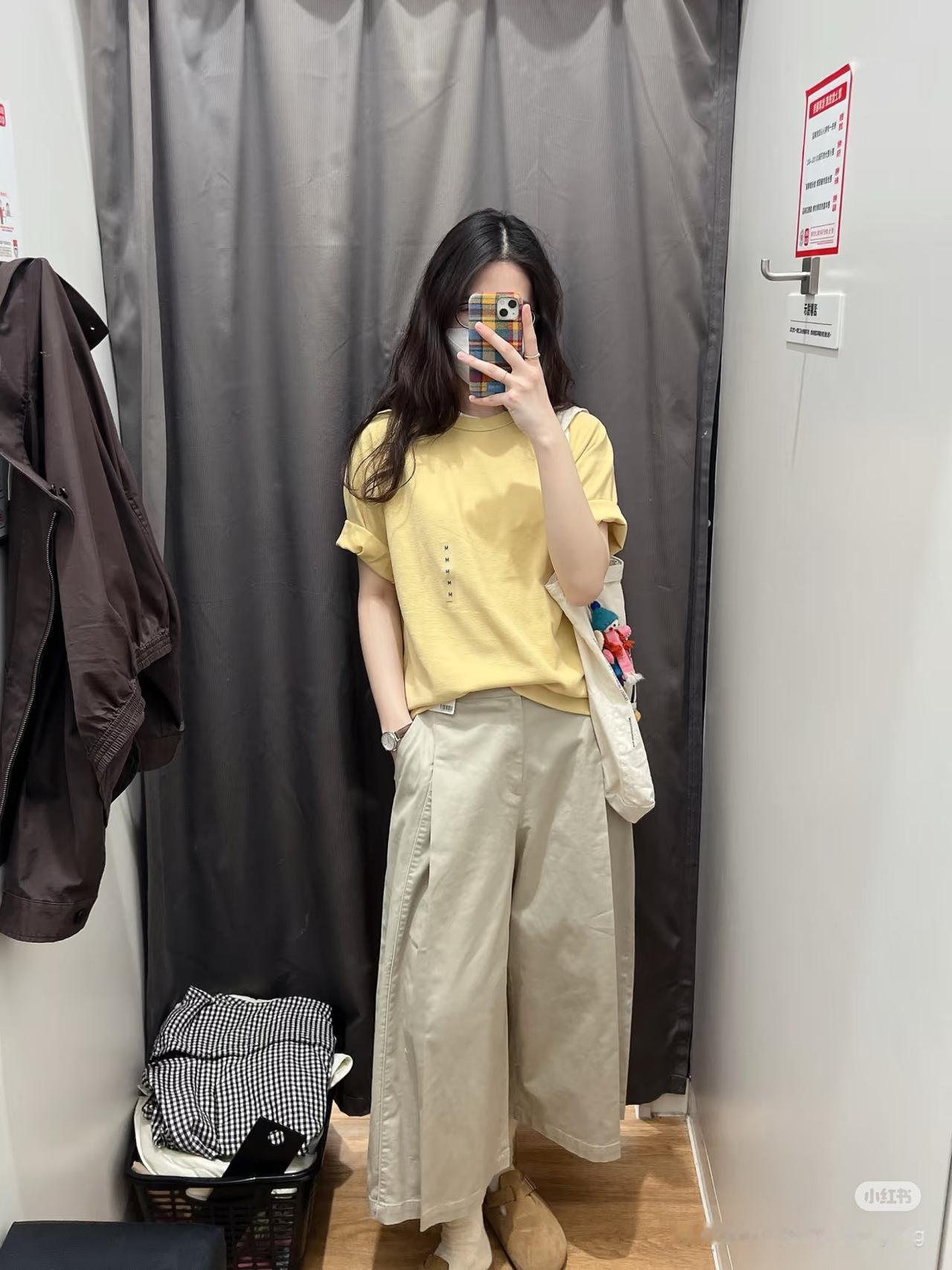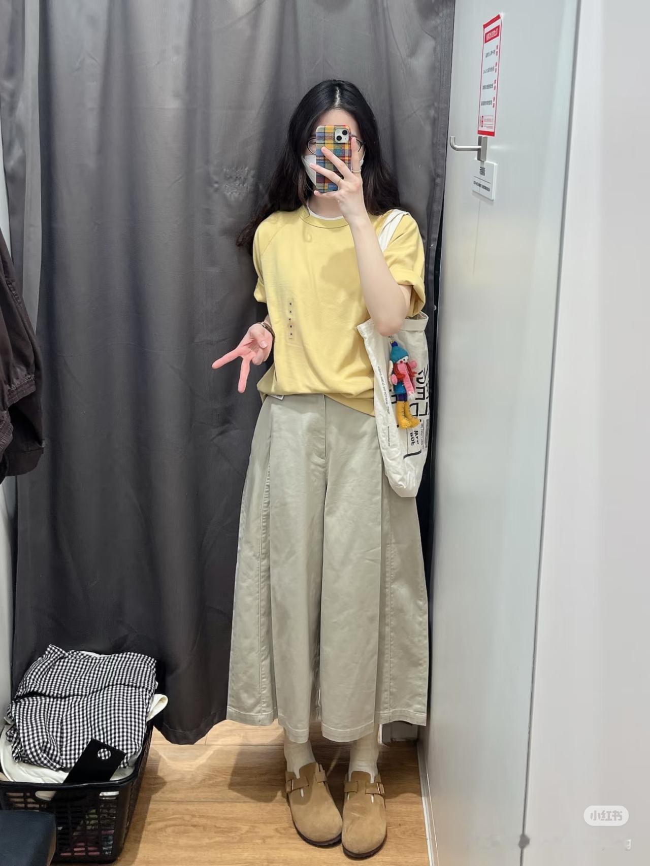 🍋优衣库这件短夹克咖色好像也不错~ 好久没逛男装区,发现一件颜色美丽的T恤~黄色穿起来还是蛮显白的! 尝试了这件夹克的咖色,搭神裤意外的还不错,有入深色的姐妹嘛🙋♂️