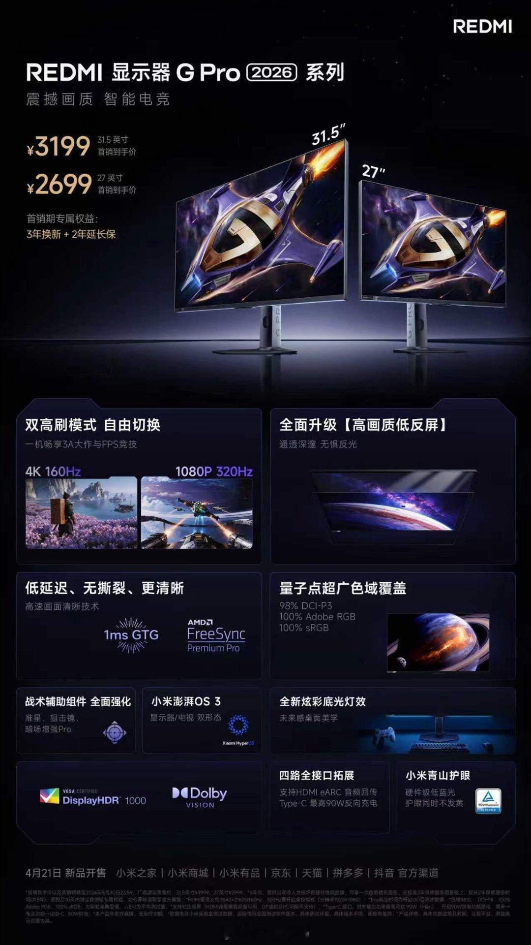 REDMI Book Pro 2026 旗舰性能,高能 AI现已开售,首销特惠 500 元,首销价 6999 元起!至高搭载第三代英特尔酷睿Ultra X7 358H至高 80W 性能释放,3A 游戏大作高帧畅玩至高 99Wh 巨无霸大电池,高清护眼LCD屏支持远程关机唤醒,超级小爱个人知识库14″、16″ 双尺寸,高效办公新选择