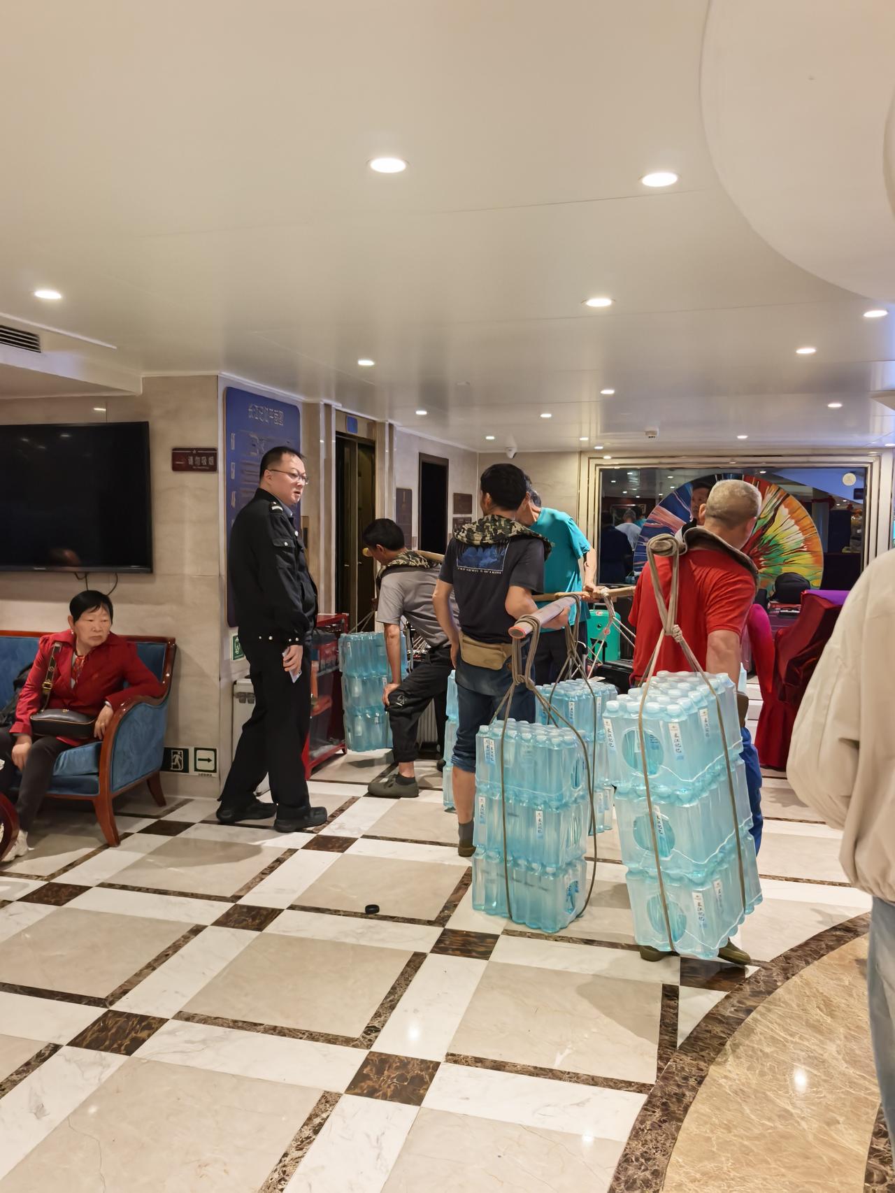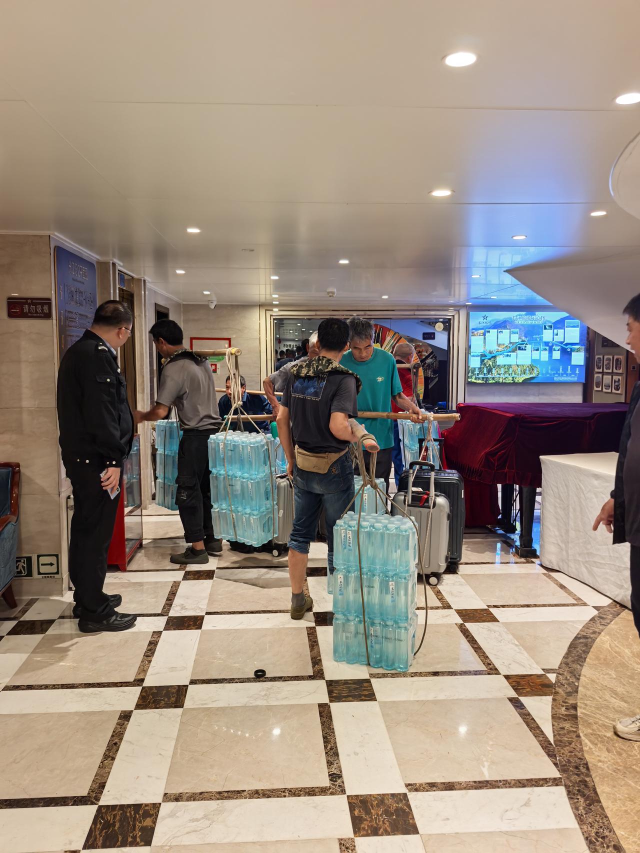 4月16日早,我们乘坐的长江记忆号在重庆的朝天门码头靠岸。 在船上第1次看见了重庆的棒棒。附图是棒棒为船上运送补给,然后再把乘客的行李给挑到岸上。 和抬滑竿的轿夫一样,虽然辛苦,但是能获得收入,清闲不是他们想要的。 但是他们肩上的棒棒和我们熟知的扁担不一样。扁担与肩膀的接触面积比较大,相对轻松。而他们使用的棒棒圆圆的,会很压肩膀的。 这是什么道理呢?也许只有重庆人才明白吧。春日生活打卡季旅行见闻