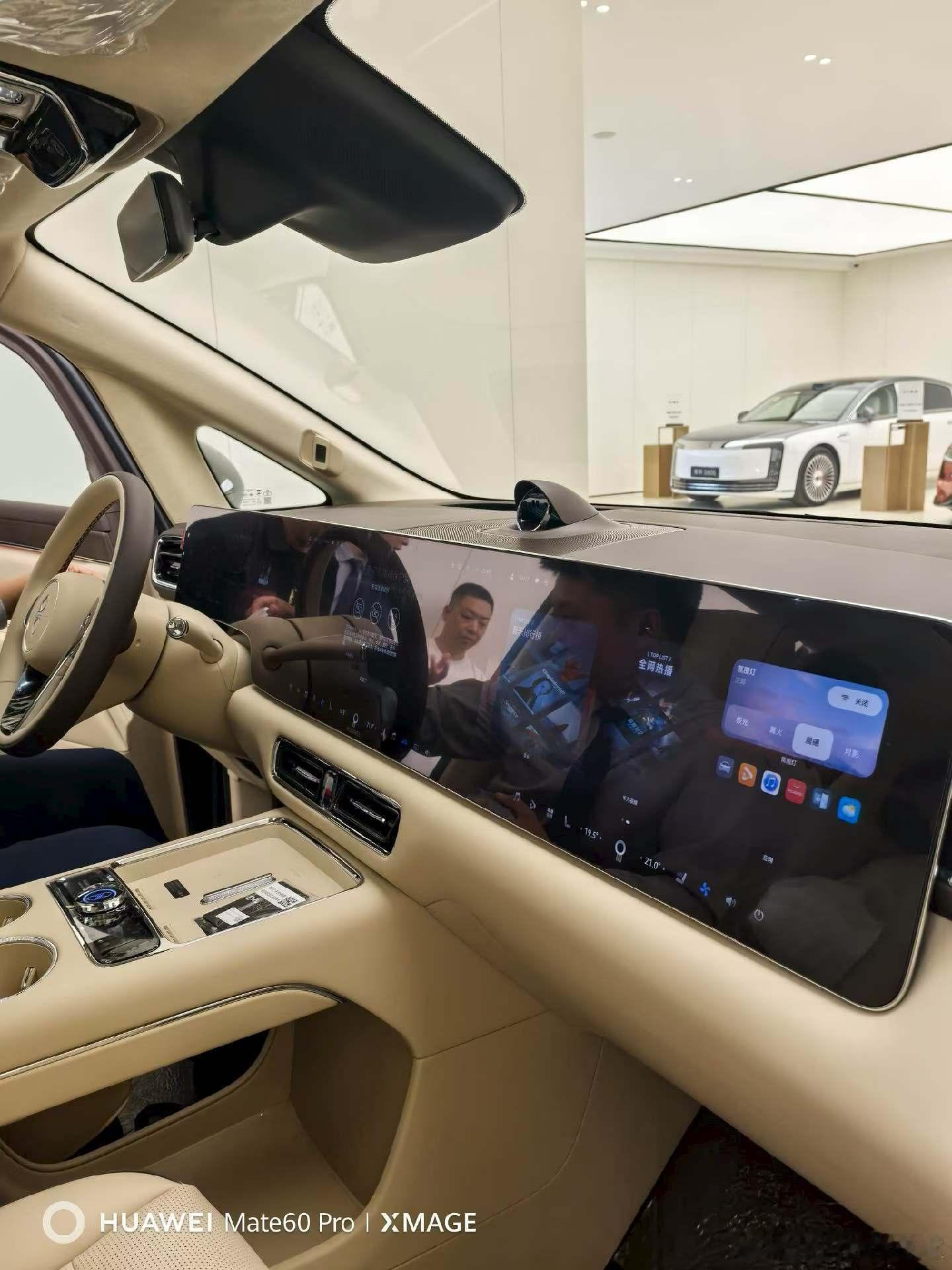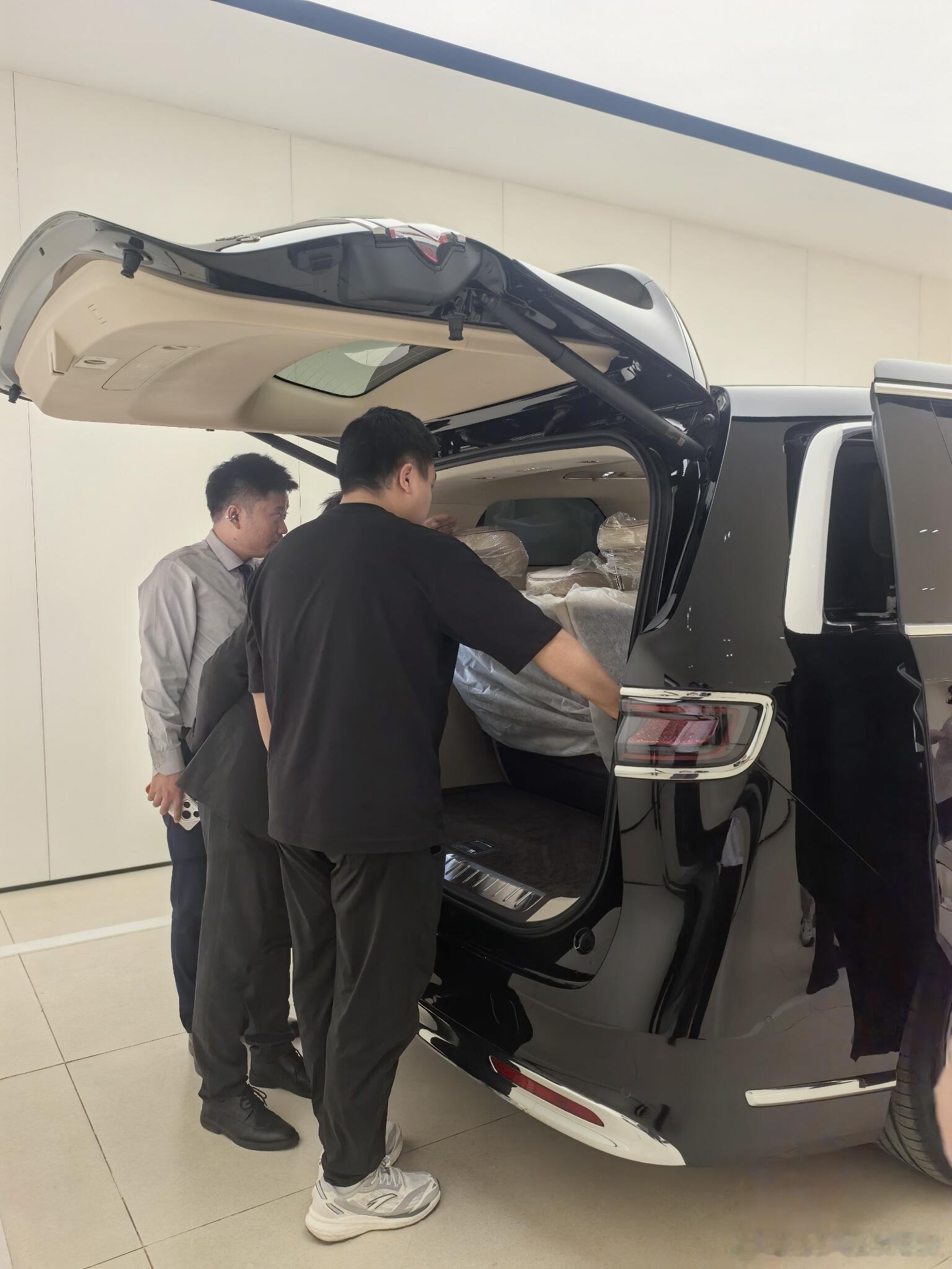 智界V9到店后看车用户还是挺多的嘛,这台车一定要坐上二排,然后打开机械按摩。大
