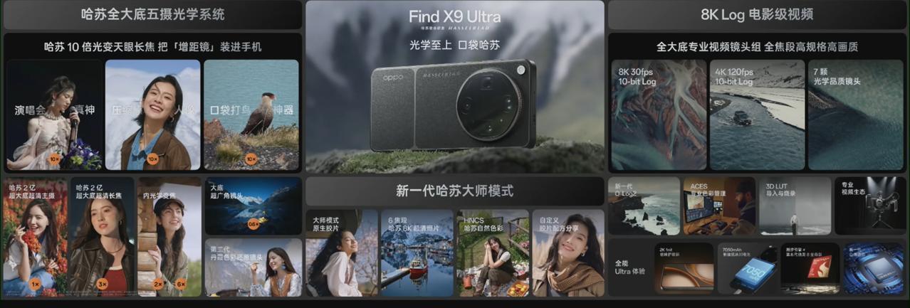 7499元起,OPPO Find X9Ultra发布 12+256GB:7499元 12+512GB:7999元 16+512GB:8499元 16+1TB 卫星通信版:9299元 16GB+1TB 卫星通信版 哈苏大师套装:11999元 核心参数如下: ---骁龙8 Elite Gen5处理器,LPDDR5X内存,UFS 4.1闪存 ---6.82英寸OLED四等边直屏,2K分辨率,144Hz 8T LTPO刷新率,BOE X3 ---后置200MP主摄(LYT901,1/1.21英寸,F1.5)+50MP超广角(LYT600,1/1.95英寸)+200MP潜望长焦(OV52A,1/1.28英寸,3倍,F2.2)+50MP潜望超长焦(JNL,1/2.75英寸,10倍,F3.5)+3.2MP第二代丹霞原彩镜头 ---前置50MP JN5镜头 ---100W有线+50W无线充电,7050mAh电池 ---机身厚度9.1mm/8.6mm,重235/236g ---支持NFC、红外遥控,3D超声波指纹,IP68/69,X轴线性马达(0816),对称双扬,USB 3.2 Gen1 手机是好手机,满足了我对手机影像的幻想,有2亿像素中焦还有10倍光学超长焦,屏幕也没妥协,依旧是2K京东方屏幕,外围配置都很顶。 唯一缺点就是发布太晚了,但凡早一个月就把手里的Find X6Pro换了。