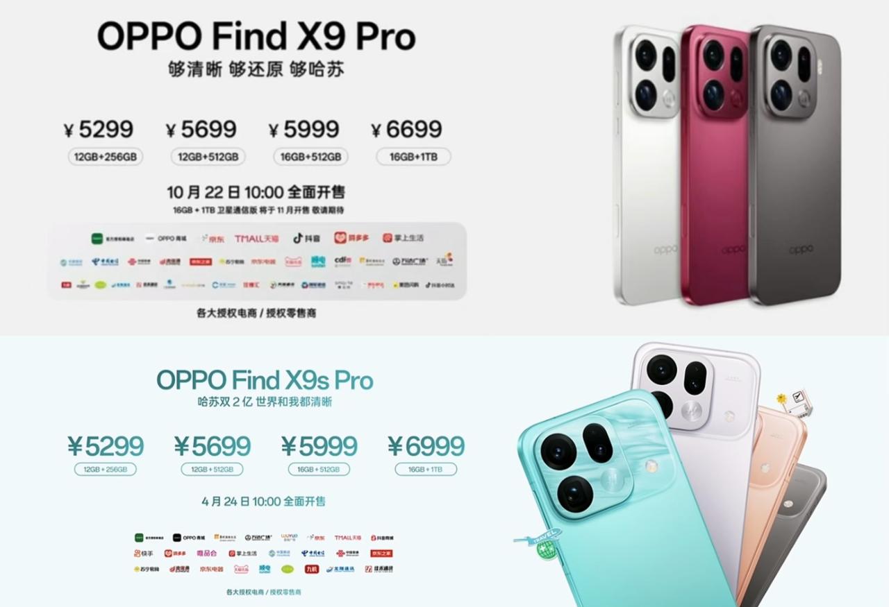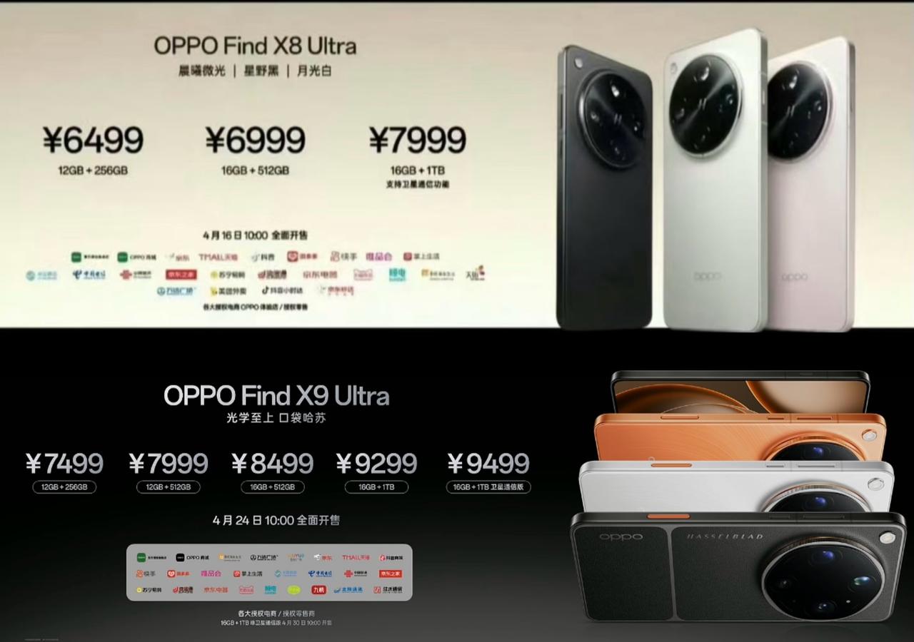 对比上一代Find X8 Ultra,相同内存组合,Find X9 Ultra涨价1000-1500块钱 而Find X9s Pro顶配比上一代Find X9 Pro贵了300块钱