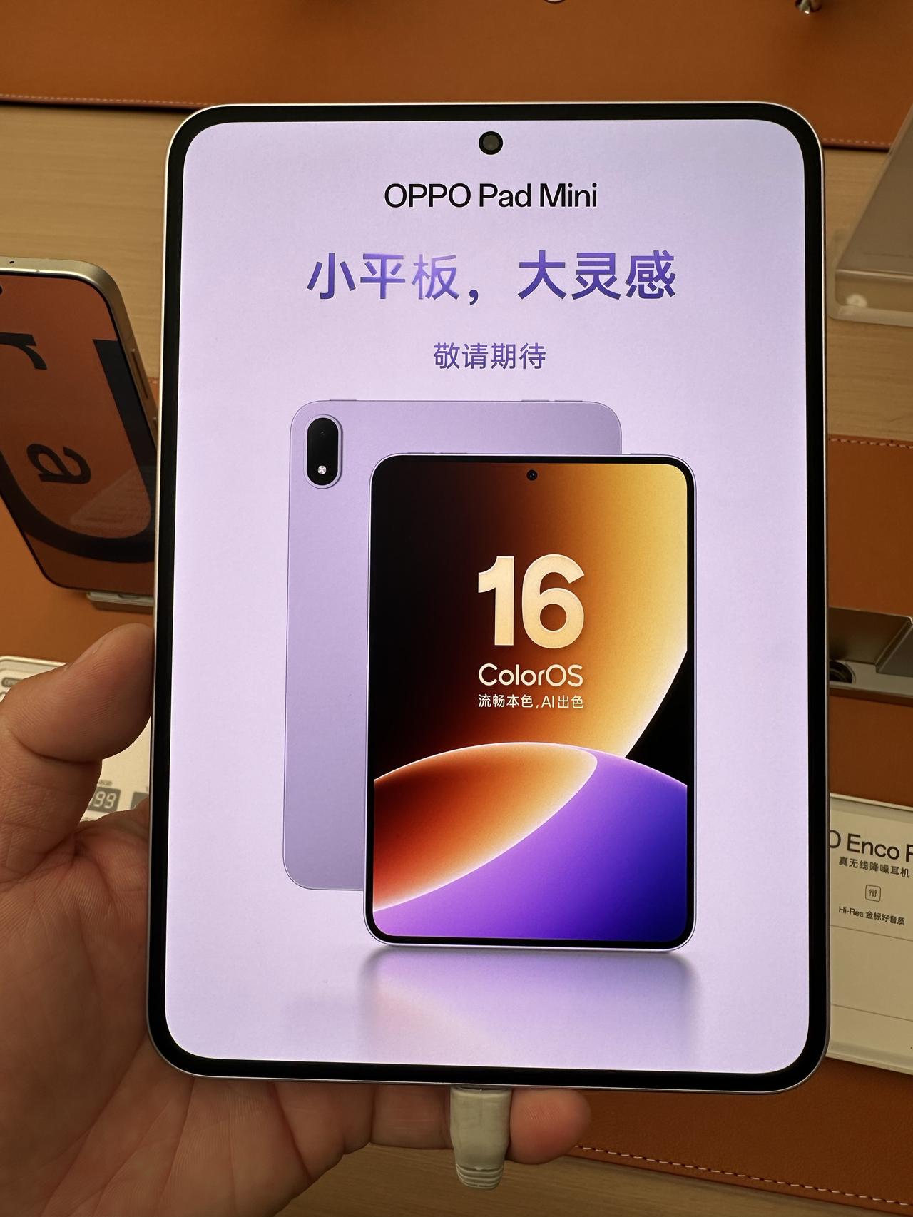 OPPO Pad Mini渲染图边框非常窄,真机上手宽点点,也合理,整体颜值在线。如果有个esim卡版本就完美了。