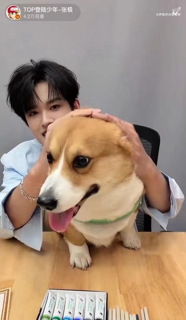 张极带狗直播张极带啵啵直播 张极你是懂宠粉的!出道600天直播带啵啵出镜,小狗眼神有戏,像在配合“爸爸”营业,默契值拉满。