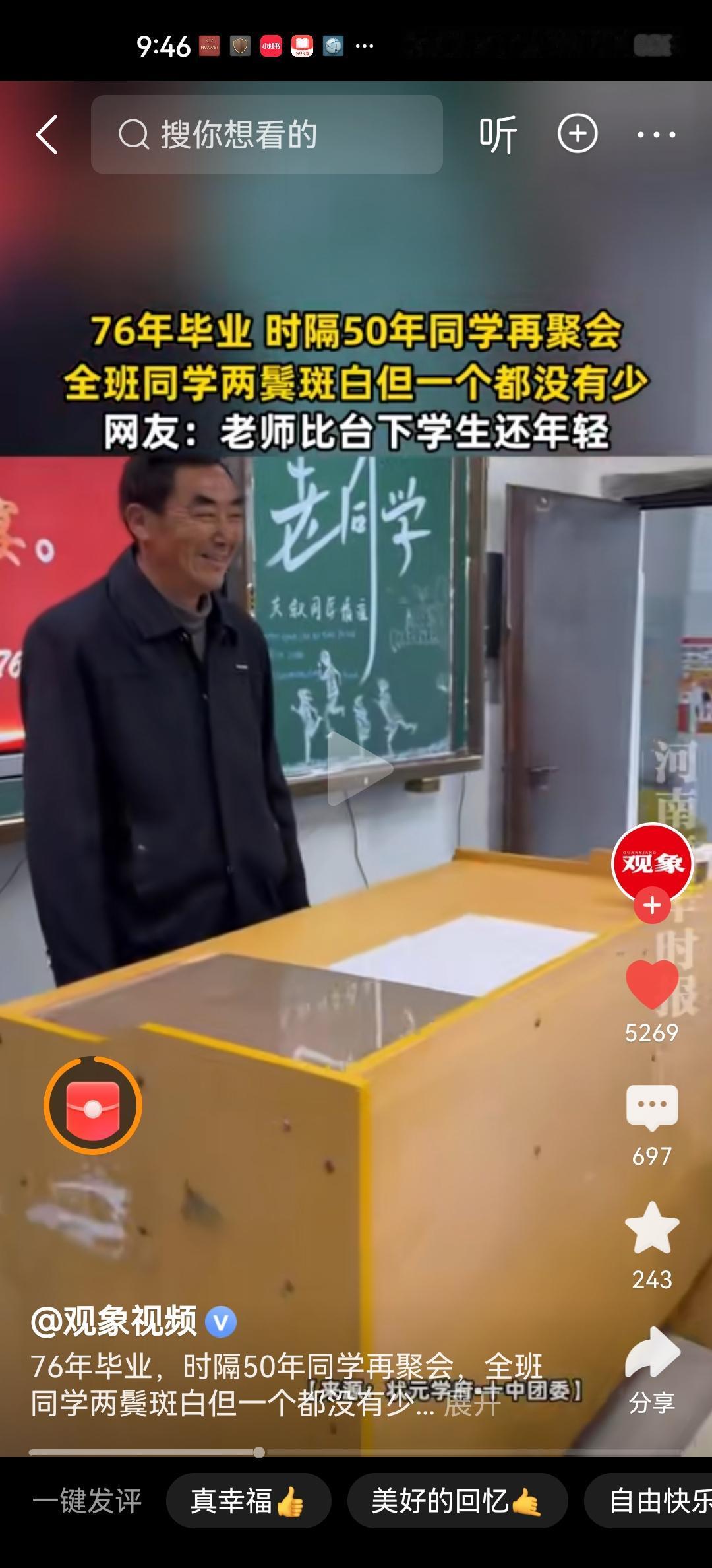 9 75年高中毕业的同学,全班43个人,一个不少的,在毕业50年再聚会。老师也还在,而且看起来比一些学生还年轻。真的太不容易了! 不知道这些同学有没有在天南海北的,如果有,现在行动自如,还能回来参加毕业聚会也很不容易。最最关键的,那真是没有去世的,没有坐牢的,这非常不容易。不知道他们这50年的命运如何,做官的、做生意的,务农的、经商的个个都很好,而且还很年轻。想想都很不容易。 回想我们自己每个人不论是高中还是大学,自己的同窗好友,还有多少人存在于人世的,还能找到的,还能自由的出入这个世界的。人到老年又能健健康康,还能行动自由,又没有太多包袱,这就是幸福啊。大家觉得呢?