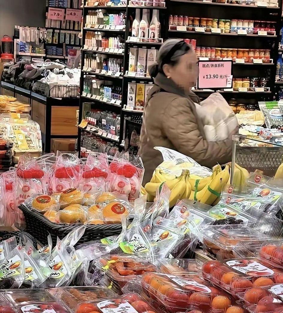 大娘从不生产瓜果蔬菜, 她只是超市的搬运工。 挣个中间价,不容易啊…