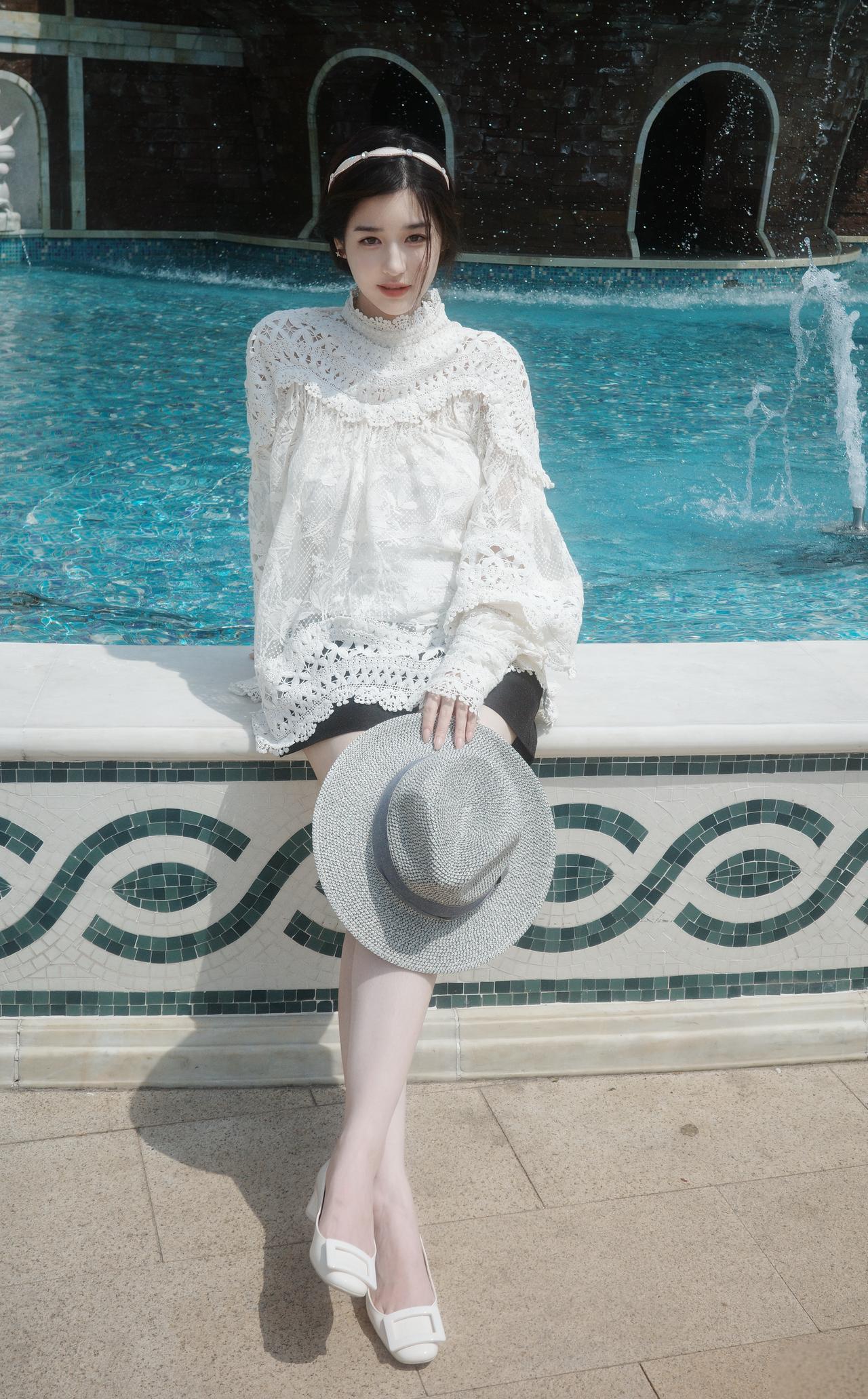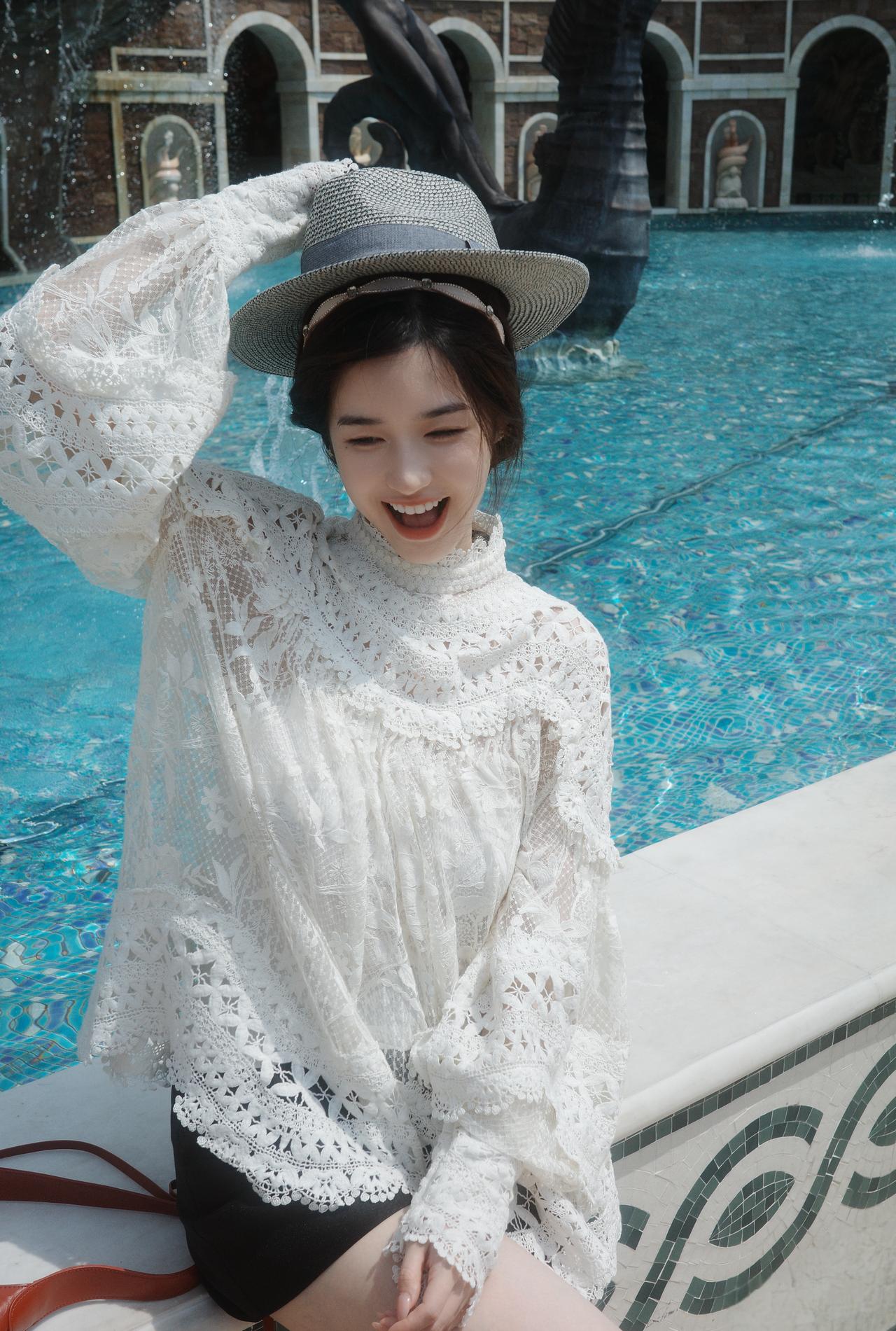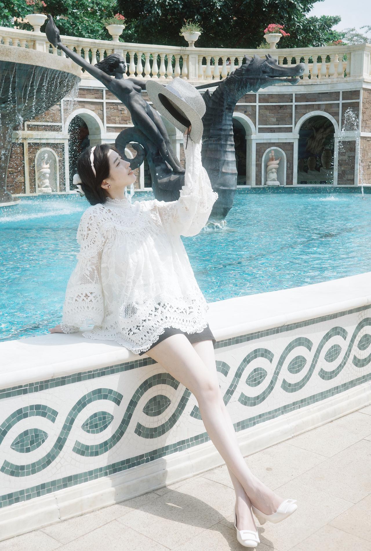 金合欢开得漫山遍野,阳光穿过枝叶,落在蕾丝裙上,像一场不真实的春日童话。 风里