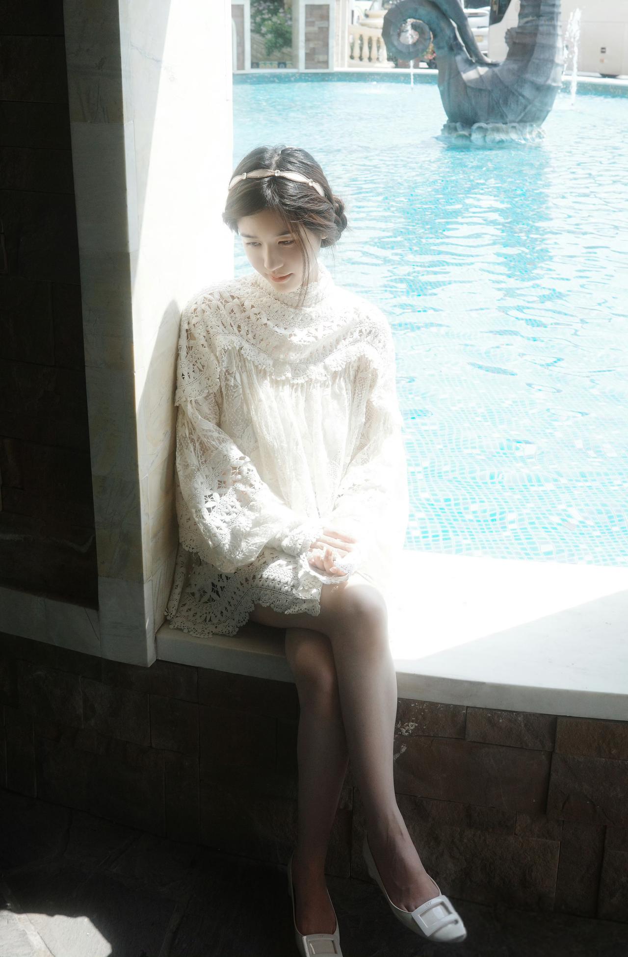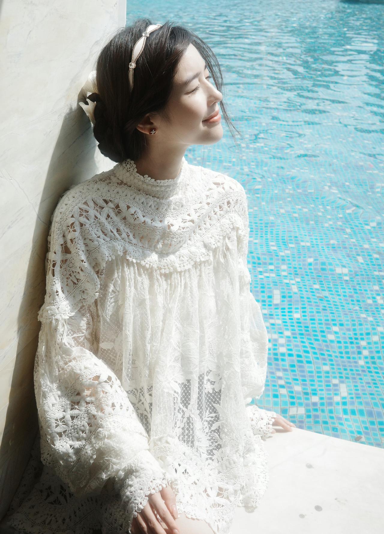 旧时光里的复古新娘,自带故事感。 不用等谁,我也可以为自己穿上婚纱。 蕾丝与光