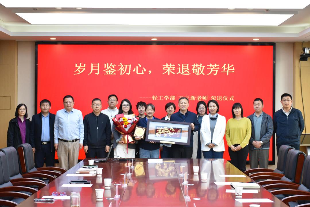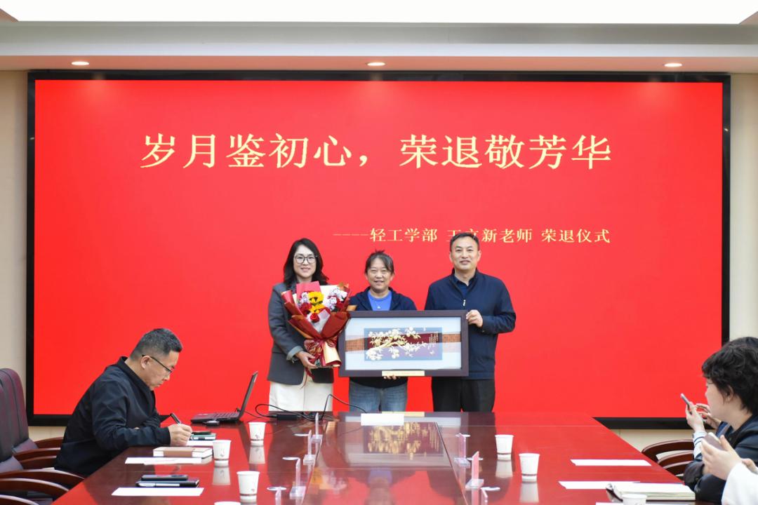 齐鲁工业大学轻工学部王立新老师荣退仪式 4月21日举行, 副书记昝瑛瑛主持并与书记孔凡功向退休教师颁发荣退证书、纪念品并敬献鲜花,孔书记讲话。