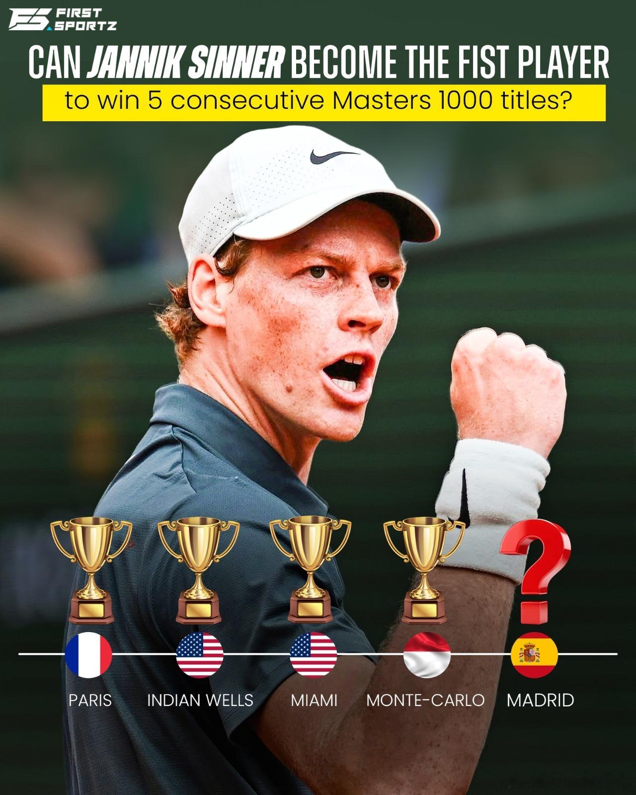 如果辛纳赢得马德里、罗马和法网冠军,他将在排名中达到15,400分,这将是历史上第三佳成绩。ATP积分历史排名:1️⃣ 德约科维奇:16,7902️⃣ 费德勒:15,7303️⃣ 纳达尔:14,7554️⃣ 阿尔卡拉斯:13,6505️⃣ 辛纳:13,350红土撒野季ATP