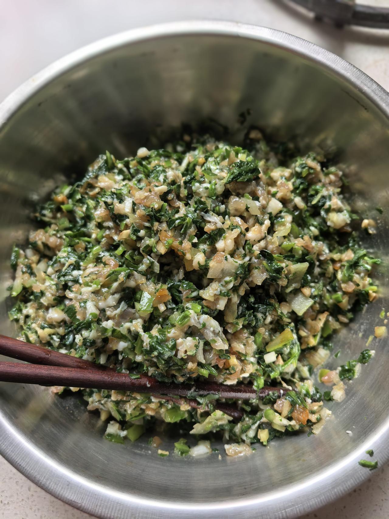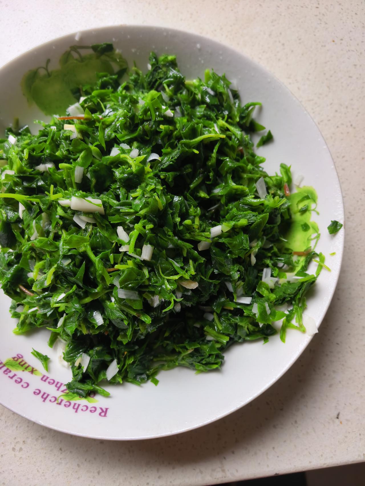 今年春天,同事从西安看娃回来,跟着她我每天都在吃鲜的路上,蒲公英、白蒿、小蒜、榆钱、枸杞芽、花椒芽、香椿芽、苦苣、灰灰菜、苜蓿、槐花无一幸免,可是扫帚苗我没吃过,心想着哪天碰见扫帚苗一定尝尝,尤其是同事说这些野菜中扫帚苗是最好吃的以后,更是向往了。 前几天溜达看见🈶一些扫帚苗,苗特别小,心想等稍微长大点再揪,可是又怕被厂里另外一些吃鲜的小老太捷足先登,因为我们厂里这些退休小老太,每天早晚溜达,看见啥新鲜的采摘啥新鲜的,于是保险起见,我们一人揪了一些回家。 今天下雨在家,不出去溜达,适合吃麻烦些的饭,于是我包了苦苣大肉饺子,顺便也拌了扫帚苗。 扫帚苗据说是肠道清理工,含有维他命、植物粗纤维等,冲着它可以清理肠道,或许还能帮助减肥,所以下次看见还要揪[偷笑][偷笑][偷笑] 晒出你的本地生活