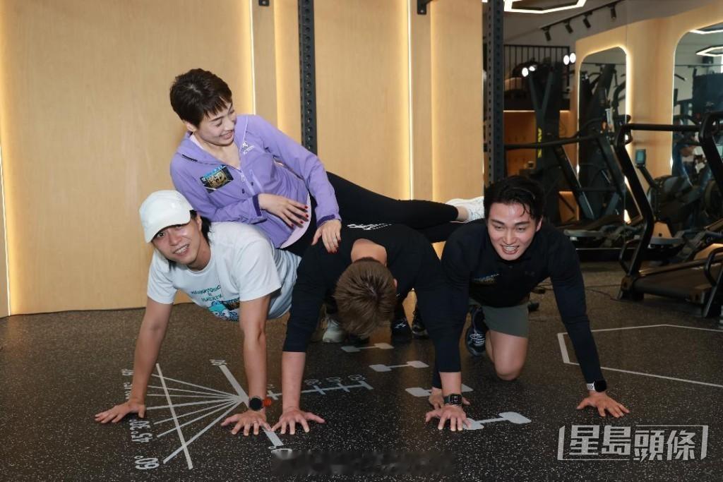 江美仪、周嘉洛、朱敏瀚及吴业坤近日出席节目《试真D》宣传活动。近期以爆肌成为焦点的周嘉洛被朱敏瀚笑称心机重,因为他特意把衣服剪成背心。一向有健身的朱敏瀚则笑说自己不是练体能,是练“能看”。江美仪笑称朱敏瀚和周嘉洛负责上半身,吴业坤负责下半身,身为空手道运动员的吴业坤更即场示范踢腿。之后三人进行体能考验,做引体上升和举哑铃,当中吴业坤表现得相当吃力,最后江美仪更躺在三人背上,由三位男艺人在下方做掌上压。