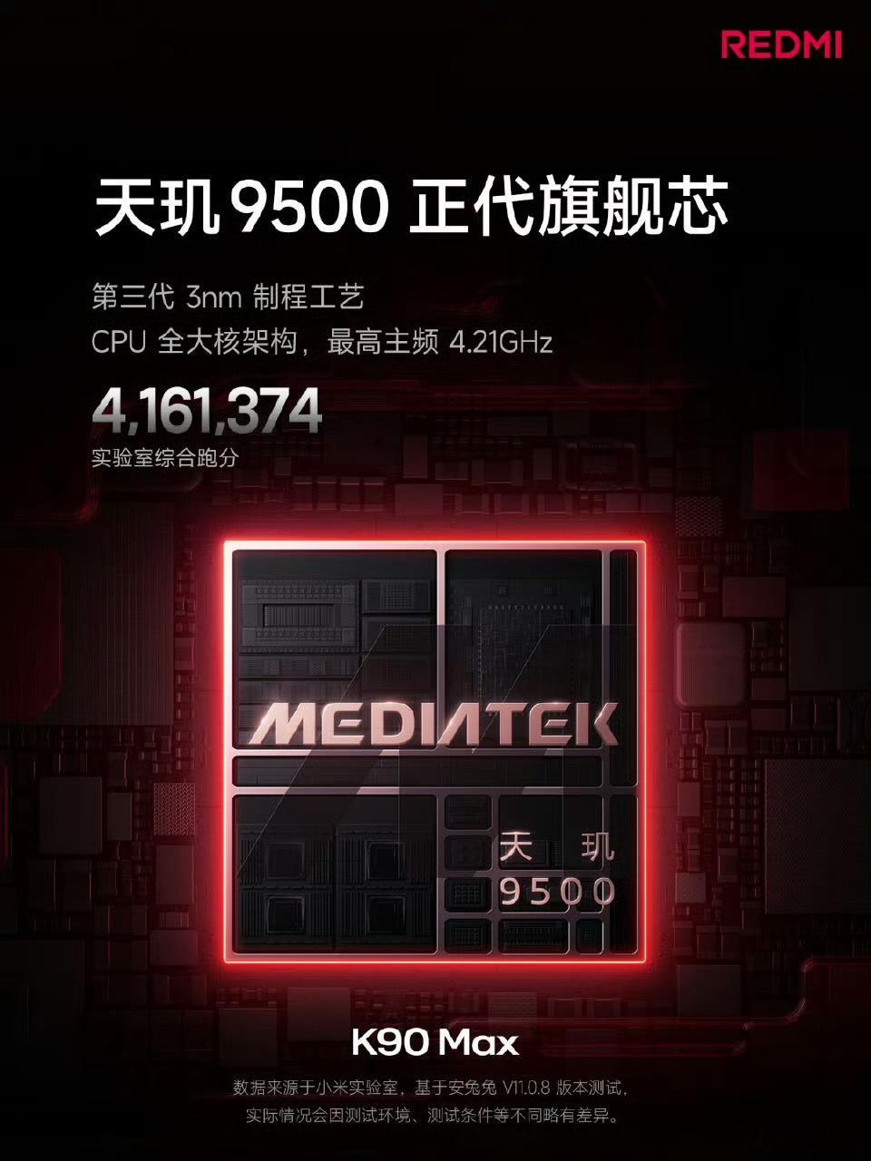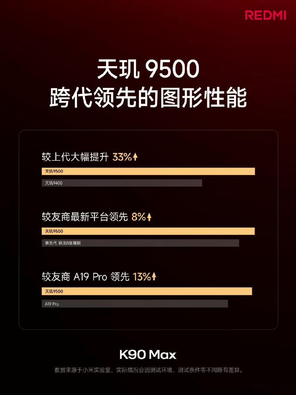 天玑9500全大核旗舰芯坐镇,图形+33%,功耗-42%,能效比直接封神。