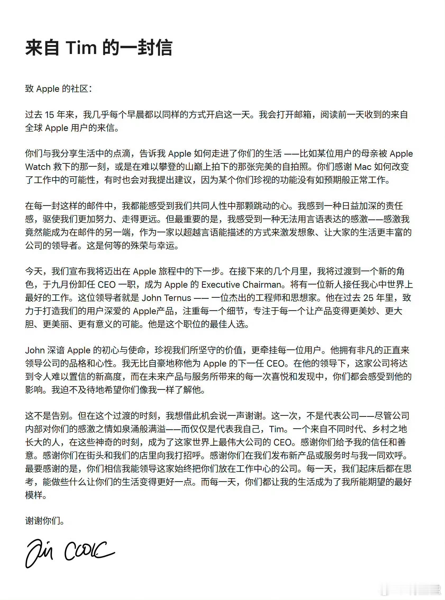 苹果更换CEO原因首次曝光苹果迎来换帅,外界对库克执掌公司这些年的表现褒贬不一。新任CEO是深耕硬件领域的资深大佬,期待在他的带领下,苹果后续产品能带来更多新意与惊喜,毕竟目前我们团队主要把iPhone当作视频创作的生产力工具来使用。