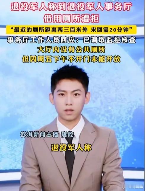 4月17日湖南长沙,右腿残疾老兵周先生内急,因距公厕太远想借用退役军人事务厅厕所,工作人员已同意,却被保安以不对外开放为由坚决拒绝。老兵解释腿脚不便仍无效,拿出手机记录时还被抢手机,保安直接报警,最终在民警协调下才得以使用厕所。