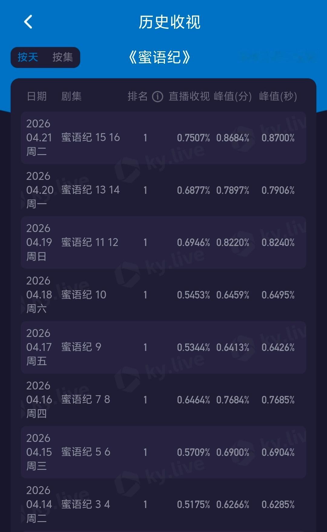 钟汉良朱珠蜜语纪这个蒸蒸日上的走势以前也挺爱追数据的,后面大盘冷了提不起劲儿了,这部有点感觉了张碧晨也在追蜜语纪