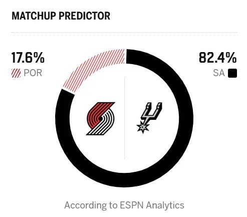 🔥ESPN预测明日季后赛:马刺胜率82.4%,开拓者胜率17.6%