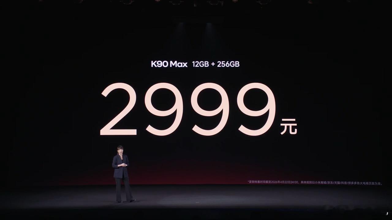K90Max价格 nb。。。3499 的官方售价,首销官方补 300,电商对 12G 版本再补 200,所以 K90 Max 的起步价来到了 2999 元。。红米K90Max发布会