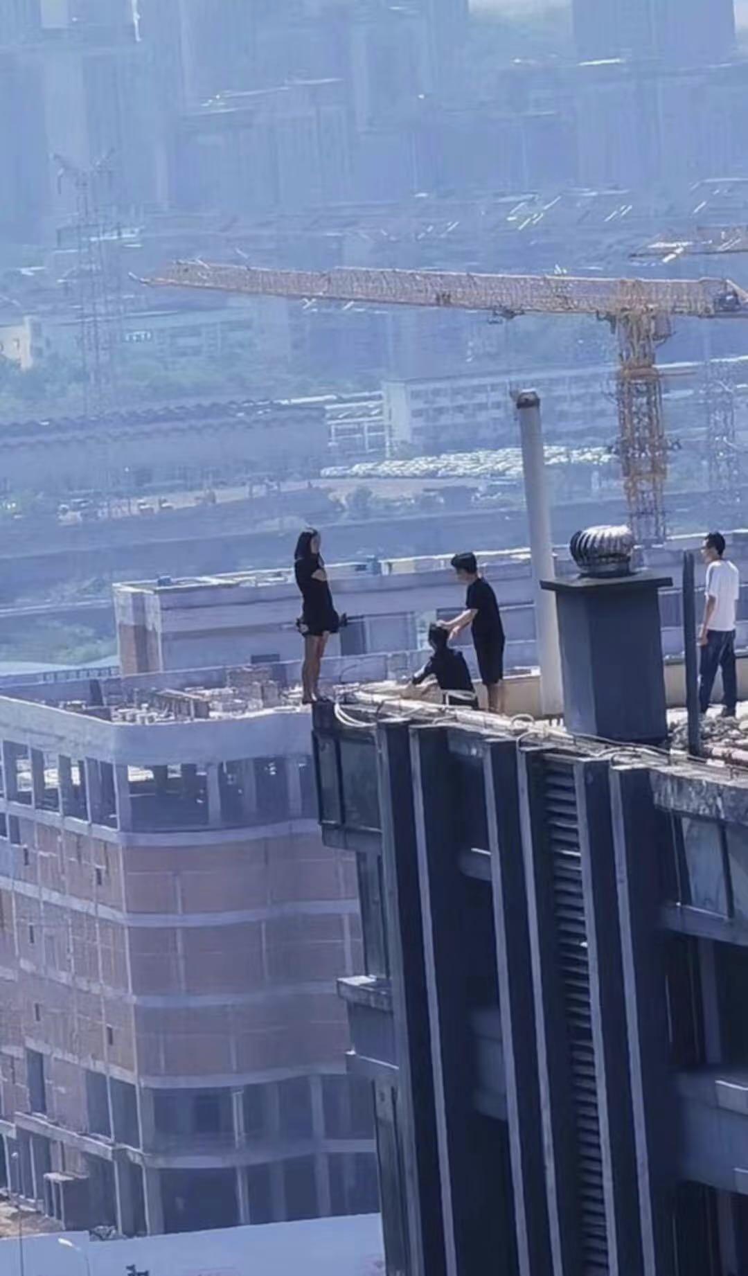 这个准备自杀的女子,在那样的位置用小前半只脚能够站立30分钟,这个平衡能力和心理能力真是逆天! 关键高处风大还得维持平衡,平衡感和核心都强。一个体操好苗子,可惜了。 跪着的那个是前男友,旁边站着的是劝解的。 前男友跪求认错,女方死活不同意,非得提一堆条件还是啥的,前男友通通认了,女方还在犹豫,劝解者趁其不备上前一步扯住女方手,前男友见机行事上去一起把人扯回来了。 只有抱着必死的决心,才能坚持下来。