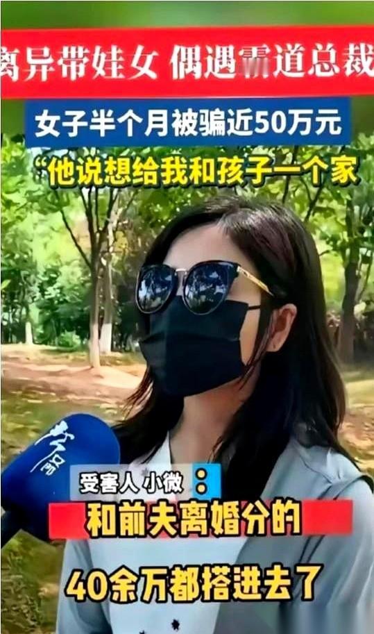 讲一个“眼高手低”最后把自己玩进去的真实故事。 这个女人前脚刚嫌弃前夫没出息、挣不到大钱,后脚就揣着离婚分来的几十万现金,带着孩子离了家。在她眼里,凭自己的姿色和手段,外面的“霸道总裁”正排着队等她挑。 没想到,“真命天子”出现得比剧本还快。 对方自称是大老板,每天嘘寒问暖,出入都是高档场所,说话办事滴水不漏。他在她面前表现得体贴入微,甚至连她孩子喜欢吃什么、怕什么都记得一清二楚。 那几天,她连以后住哪套别墅、婚礼请哪些亲戚都想好了,觉得前半辈子真是白活了。 就在这种极度的甜蜜里,对方随口提了一个“赚快钱”的机会。她没带半点犹豫,把离婚分回来的几十万家底,分几次全转了过去,甚至觉得这是迈向阔太生活的“入场券”。 结果,半个月还没到,所有的美梦瞬间塌方。 那个承诺要带她过好日子的男人,突然拉黑、关机、注销账号,消失得干干净净。她对着那个再也打不通的号码,在那坐了整整一个下午,手里只剩下一堆没用的聊天记录和几个空空如也的银行账户。 有人说,这种人就是身在福中不知福,把真心当草,把陷阱当宝。也有人说,这世上能百分之百精准踩中你所有审美点、满足你所有愿望的人,除了骗子,恐怕真找不出第二个。 你是觉得她心气儿太高活该被骗,还是觉得骗子手段太高,谁遇上都得栽?