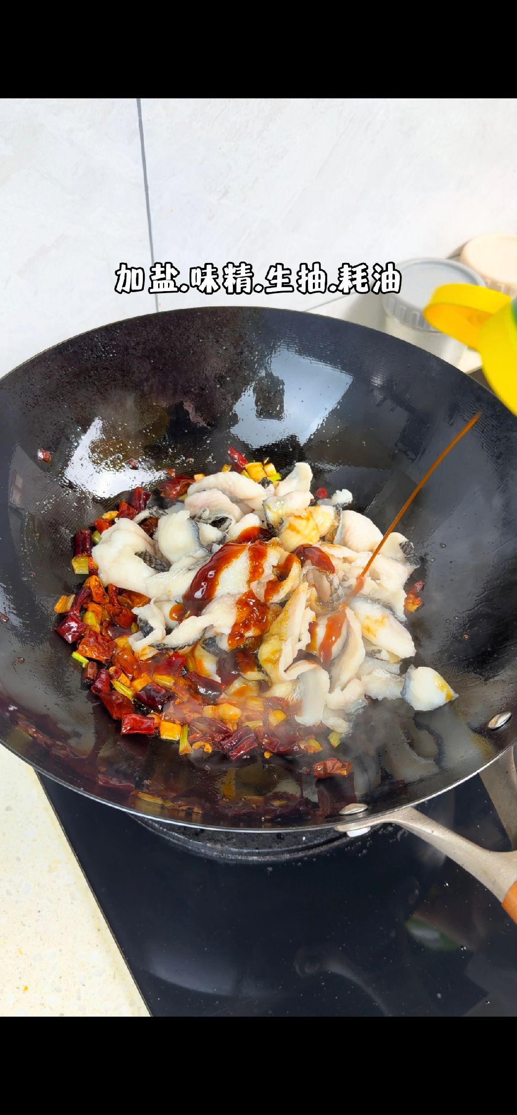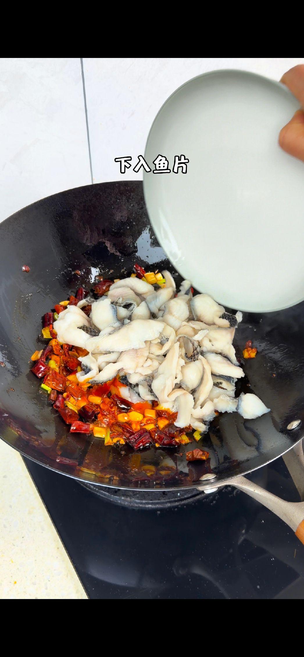 香辣鱼片新吃法,香到流口水!🍳鱼片新做法来啦,嫩滑入味越吃越香! 1️⃣鱼片处理:黑鱼片用盐、料酒、胡椒粉、生粉腌制一下,水开后下锅煮到变色,捞出备用~这一步能让鱼片更嫩哦! 2️⃣炒料调味:姜、蒜、辣椒、一勺豆瓣酱炒出香味,加生抽、耗油、盐和味精调味,搅匀备用~再切点葱段等下用~ 3️⃣混合出锅:把鱼片倒回锅里,大火翻炒,加葱段翻炒几下就可以出锅啦!不用久煮,保持鱼片嫩滑~