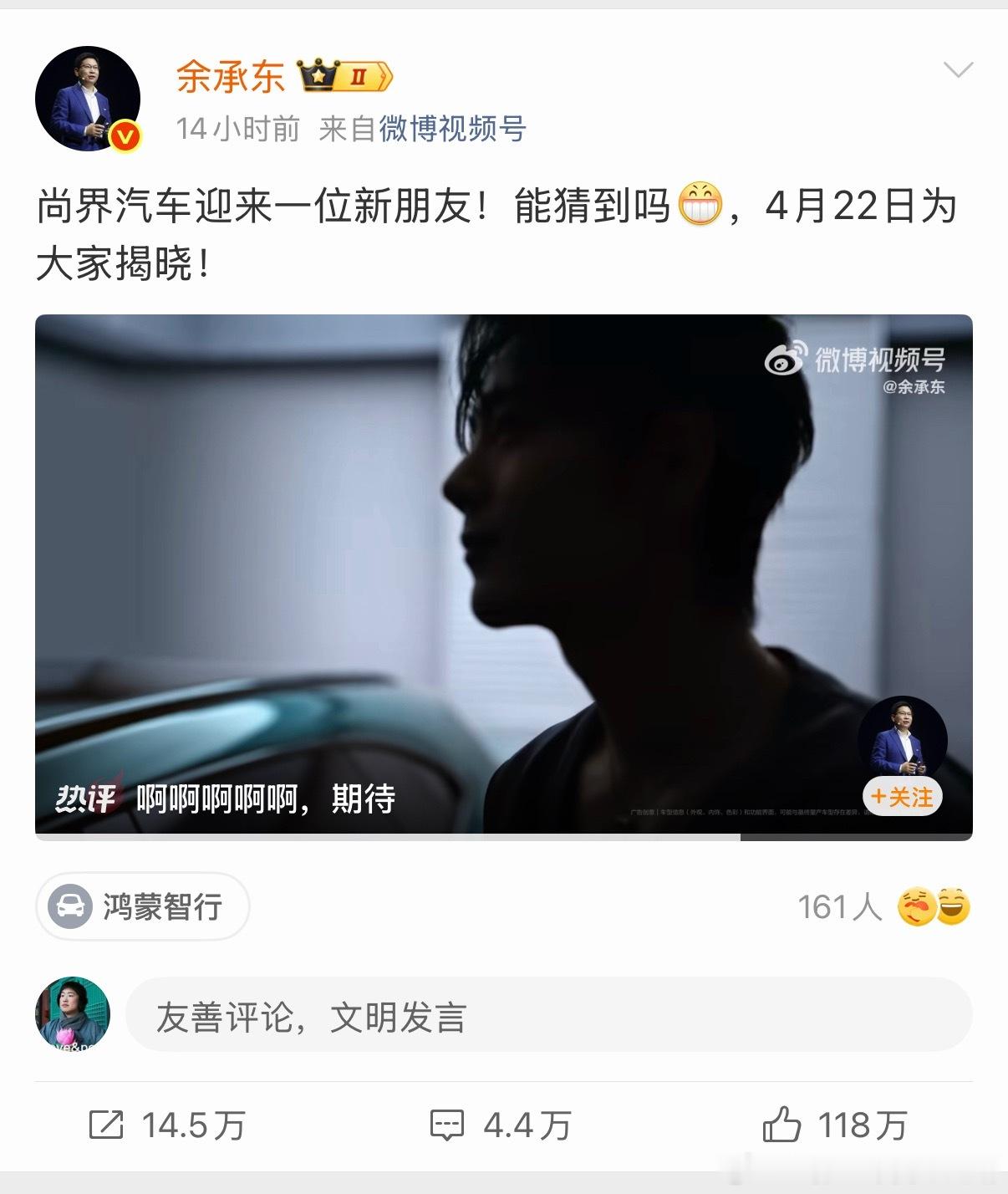 余承东老总这条肖战的预热博都118万赞了,明天正式官宣啦