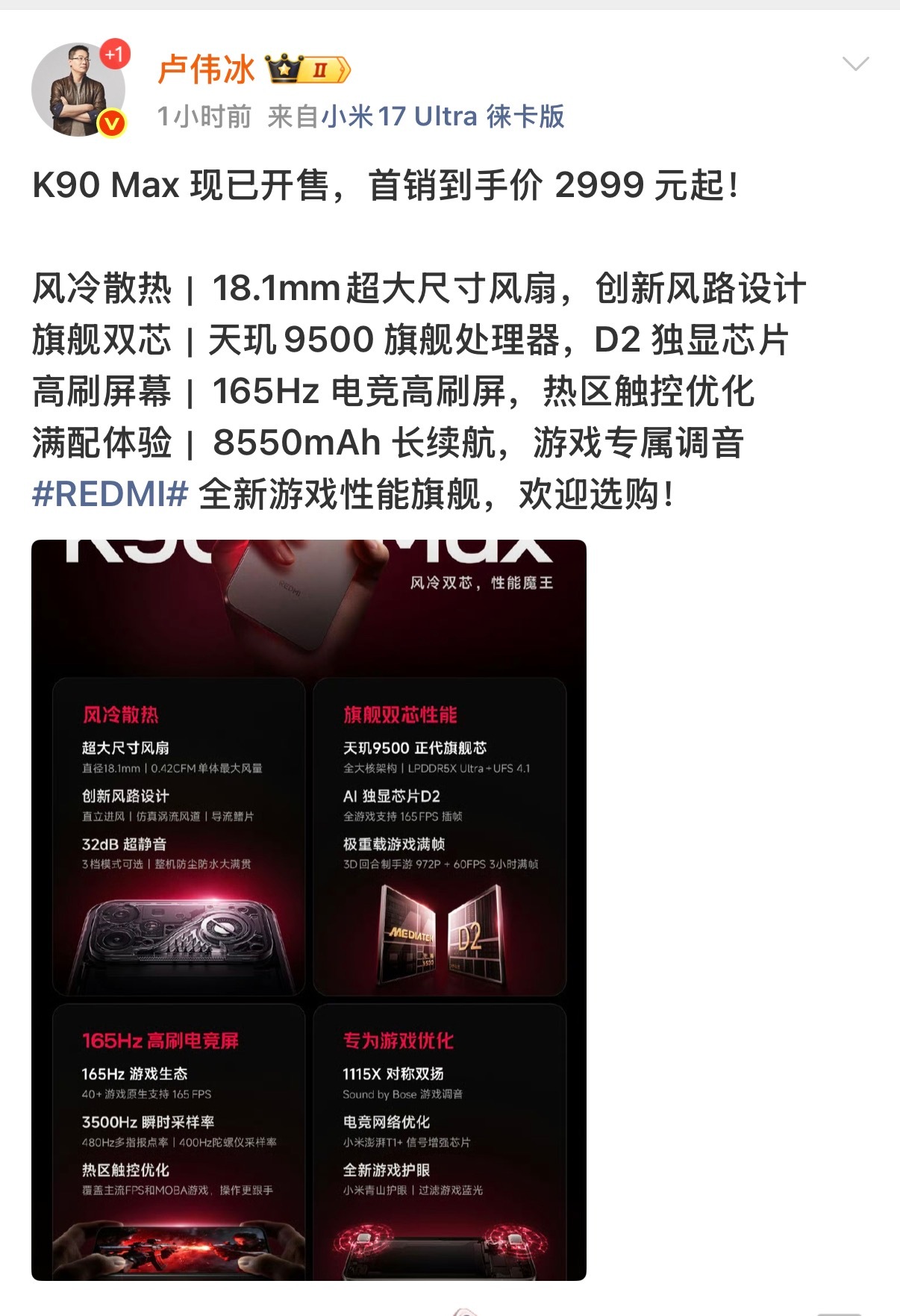卢伟冰回应K90Max定价亏损害!现在内存这玩意儿现在确实贵得离谱,固态硬盘价格翻倍涨,所以说能便宜到哪去?隔壁几家旗舰机起步价都悄悄往上提了好几百……