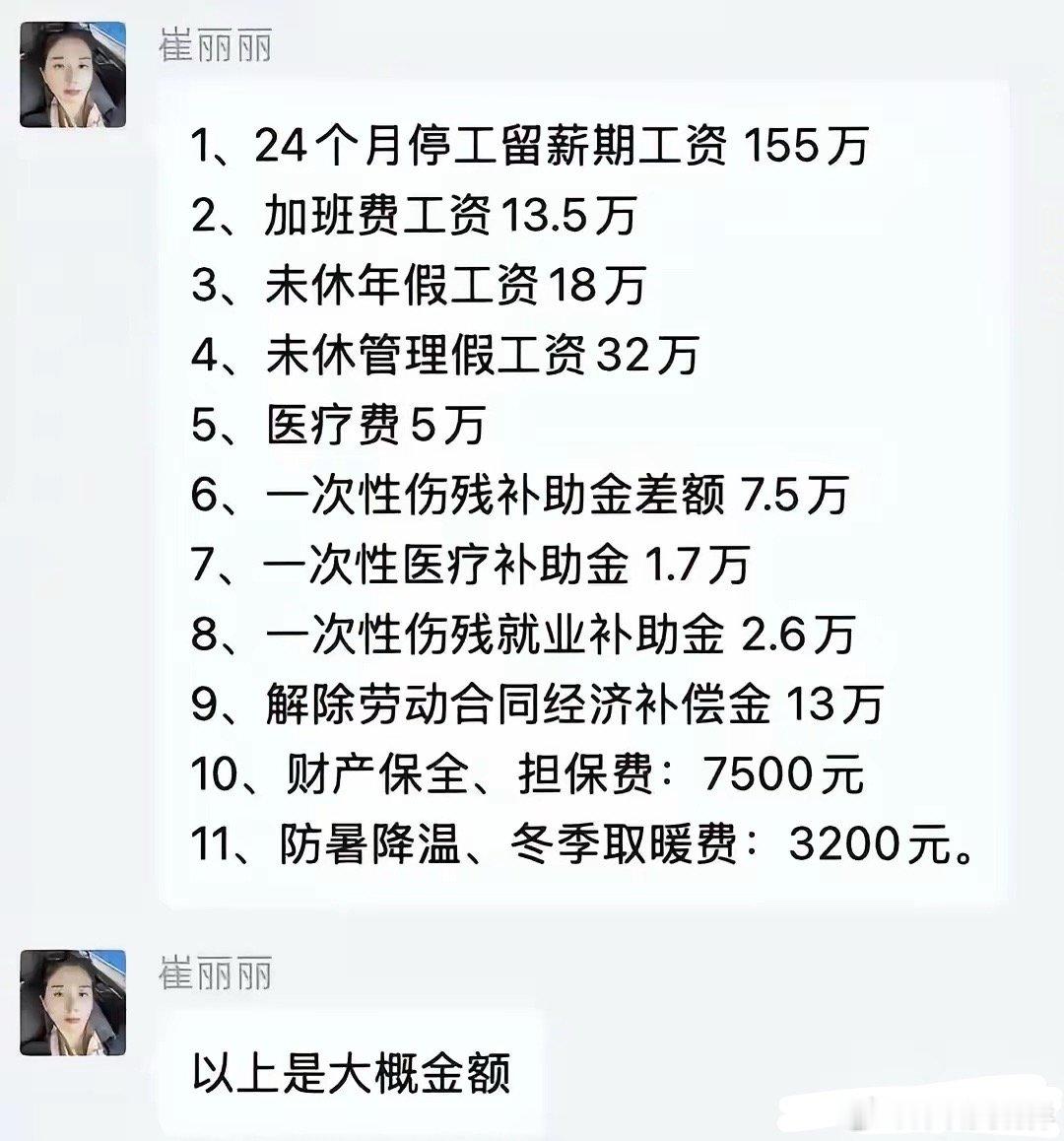 崔丽丽,再次提出了250多万的待遇诉求!包括:2年没上班的工资,加班工资,年假工资,防暑降温补贴,冬季取暖费等等。其实之前已经判决公司需支付她113万,但她不满意,又提出了新的诉求。主要就是从出事后到第一次开庭期间的工资和各项福利。她的诉求合不合理,我们不知道,但她确实有这个权利。同样她的诉求能不能够得到支持,也需要有相关的法律条文。那么大家看好她提出的这些诉求吗?合理吗?