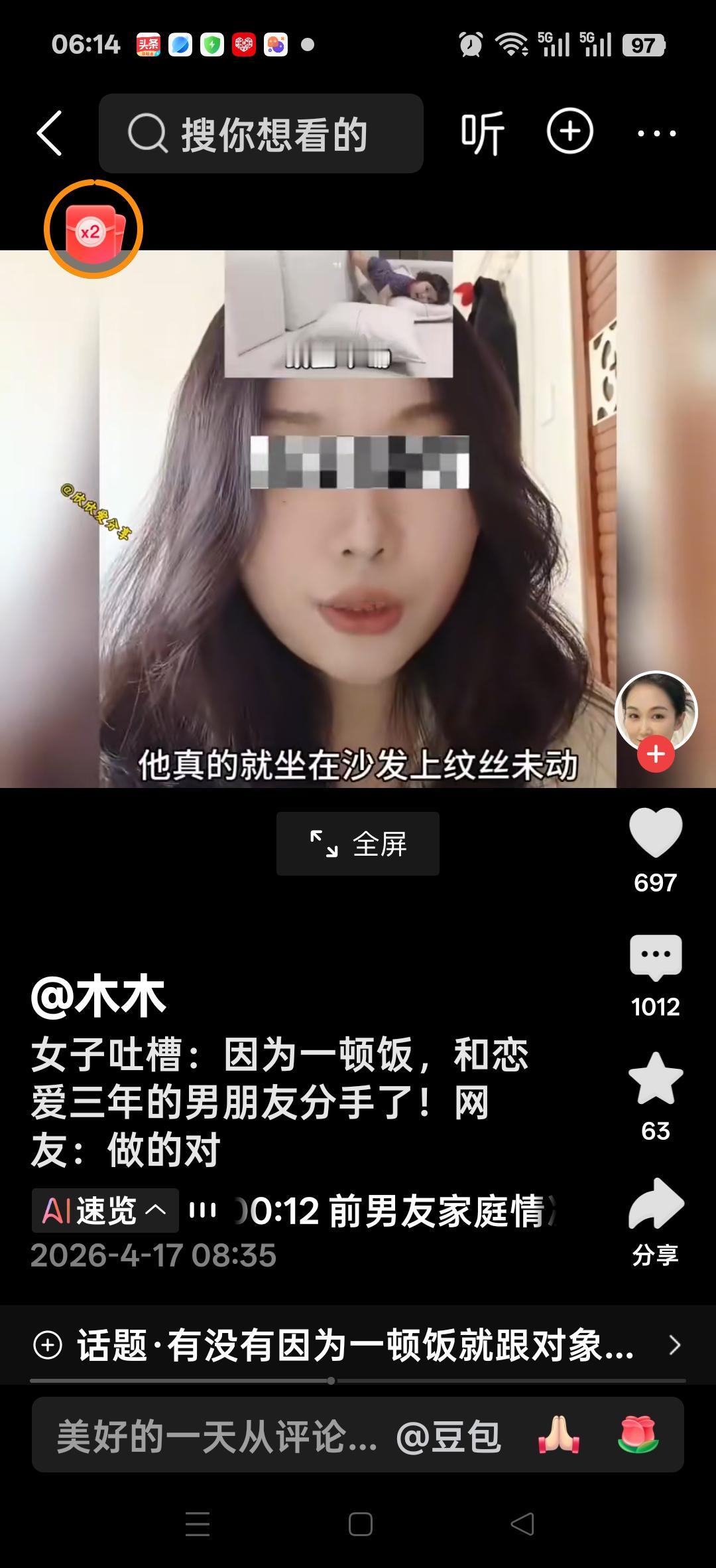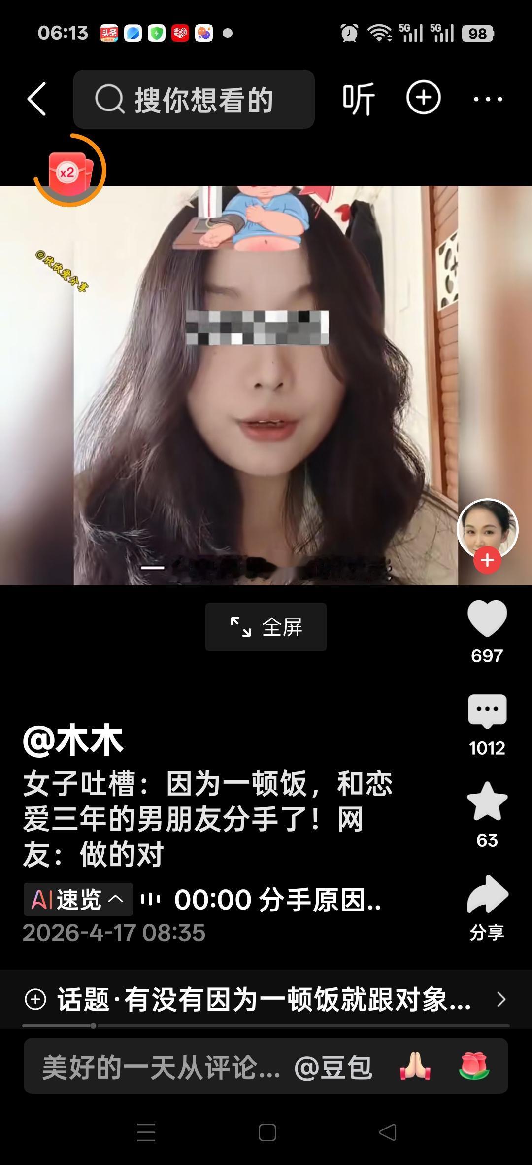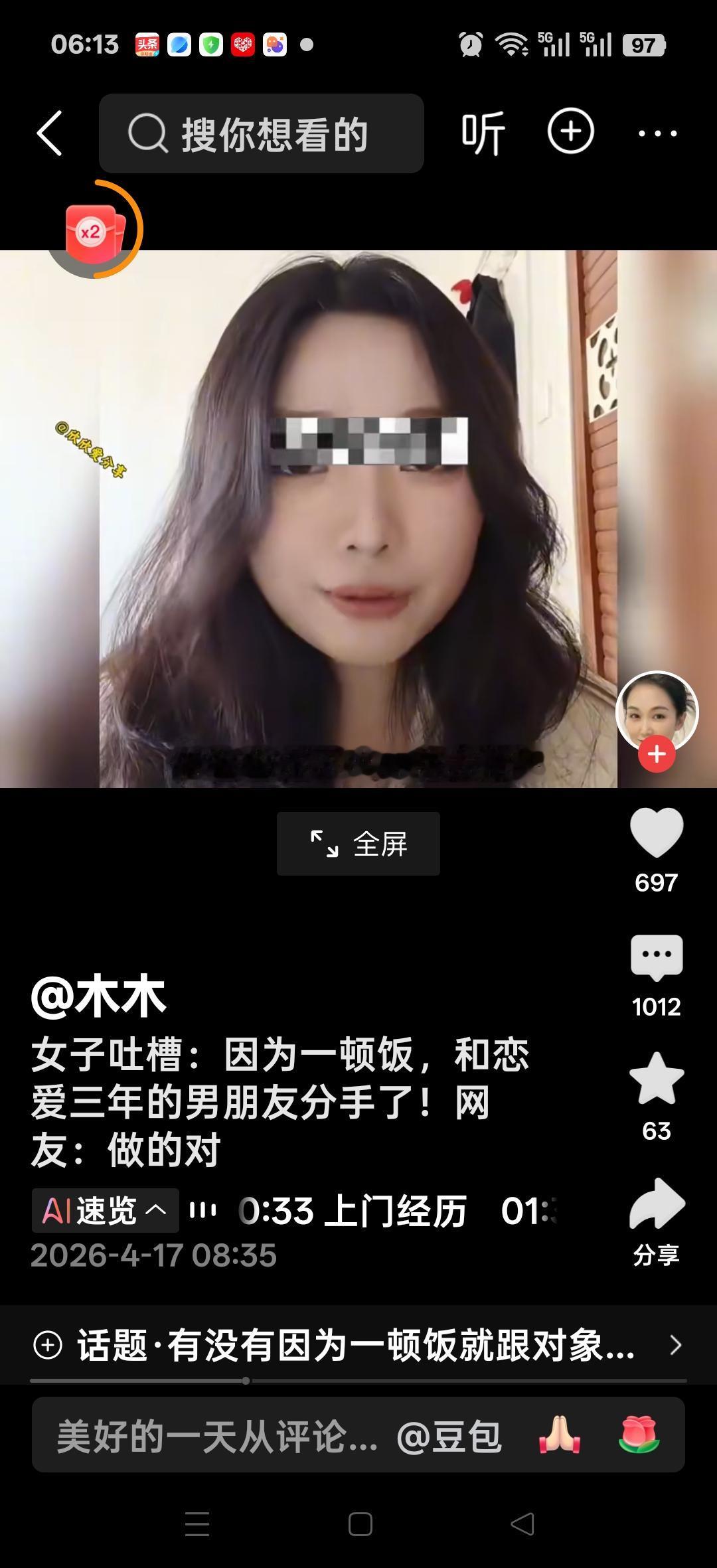 女子吐槽:因为一顿饭和恋爱三年的男朋友分手了,他爸大男子主义什么都不干,他妈忙里忙外伺候着,一家三口……。网友说:如果女孩有家庭教养,都恋爱三年了,这个时候应该主动帮助婆婆干点家务了。有的人说:此女说的道理,一套一套的,其实心里就是不愿意为家庭多付出,甚至自己孩子都不愿意服务,多干点家务就会计较分的太清,不适合过日子,适合合伙开公司!有的人说:妹妹你长了八个心眼儿,你真的留不得,该庆幸的是你男朋友。有的人说:你绝对不是一个开朗心胸豁达的人,如果是我会主动带男朋友一起帮忙,你考虑的是他的家庭状况和负担。无法共情,你和你的男朋友分手是对的,你们的三观不一致!大家说这样的吗?