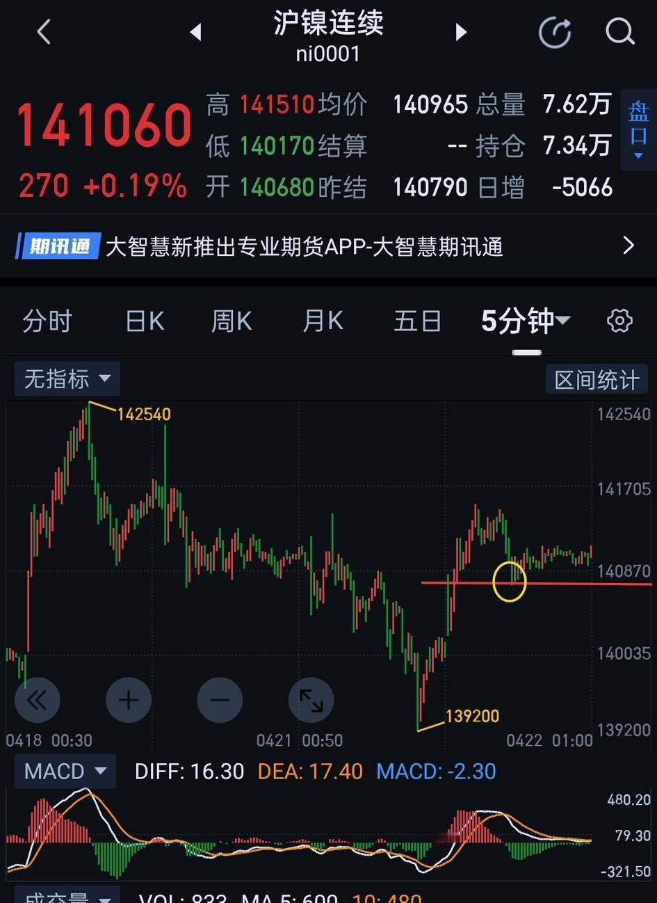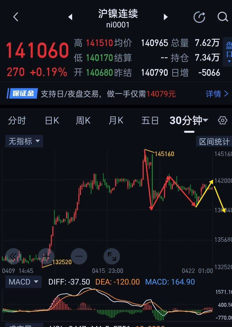 沪镍,多空胜负未分,静观其变。 沪镍夜盘,站稳图(1)140650的关键支撑,重新回到图(2)的五分钟中枢。在没有围绕该中枢形成三买或三卖前,还是观望为宜。区间震荡参与性价比不高,稍有不慎可能就沦为多空争斗的牺牲品。 沪镍日盘,可以关注图(3)140680能否有效站稳。站稳,有望向上突破图(2)中枢的束缚,后期如能站稳该中枢,可择机入场。若140680不能站稳,则要防止形成图(4) 五分钟级别的下降结构。 沪镍目前是神仙打架的高端局,进场操作还需谨慎应对。如耐得住寂寞,可待结构清晰再放手一搏。