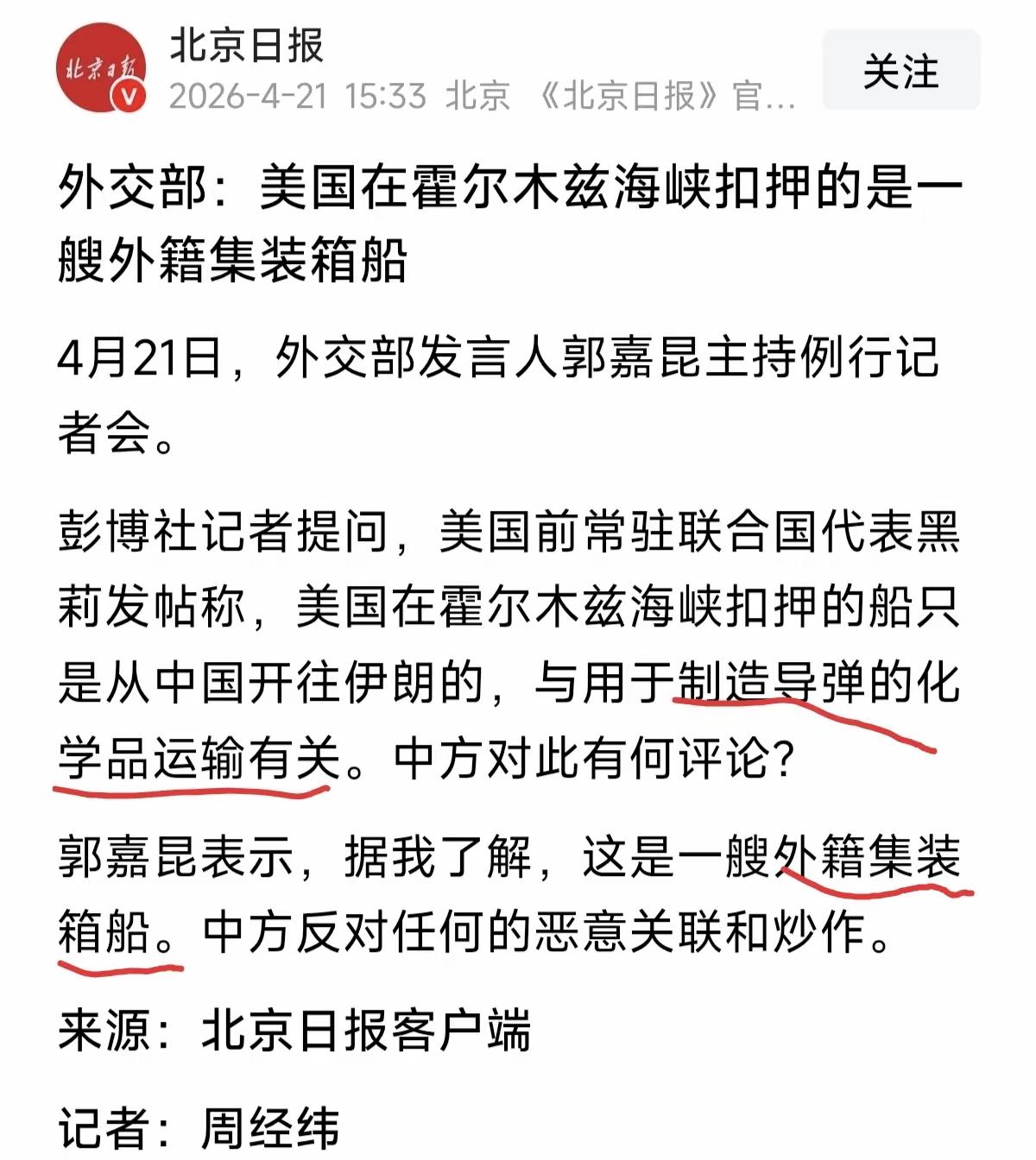 是一艘外籍集装箱船,和中国没有关系,坚决反对故意关联,故意炒作,故意抹黑中国。