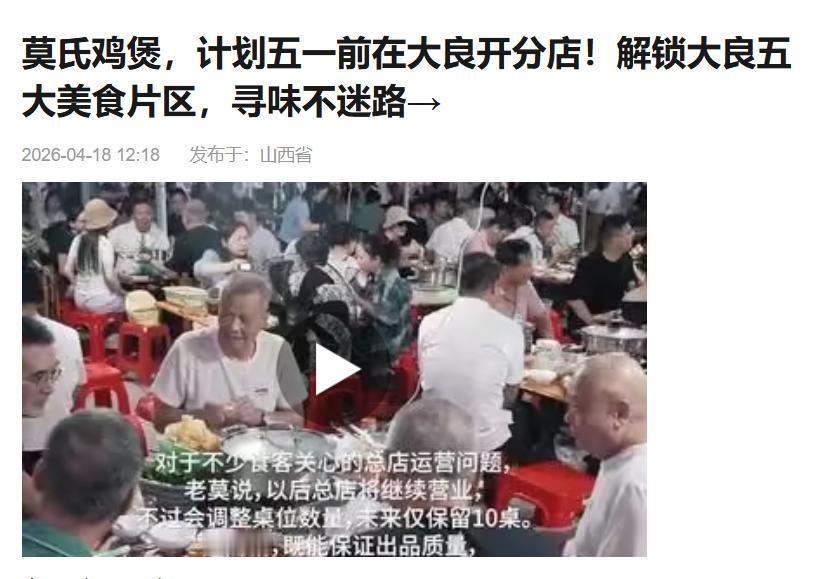 说好的不开分店呢?莫氏鸡煲莫叔反转太快:顺德大良+云浮新兴+上海,疯狂扩张 还记得莫叔那句"开分店死得快些,坚决不扩张"吗?打脸来得太快! 🔥 前脚说不开,后脚连开三家 此前,莫氏鸡煲老板莫叔面对爆火的客流,宁愿每天只睡3小时、累到瘫在地上,也坚持不开分店、不涨价,还放话"开分店死得快些"。 然而,不到一个月,反转来了: 📍 顺德大良 - 第一家分店,五一前开业,帮总店分流 📍 云浮新兴 - 莫叔老家,六祖大道旁,五一前迎客 📍 上海 - 4月20日莫叔亲赴上海,为合作店铺升级配方 🎬 明星也来凑热闹 TVB演员"鸠摩智"李国麟不仅二次打卡,还当场喊话:香港租金贵、人工贵,我加盟! 61岁莫叔的退休计划 莫叔透露:再干一两年就交给孩子,自己去旅游唱歌。但现在看来,这退休计划可能要延后了…… 莫叔啊莫叔,说好的不开分店呢?