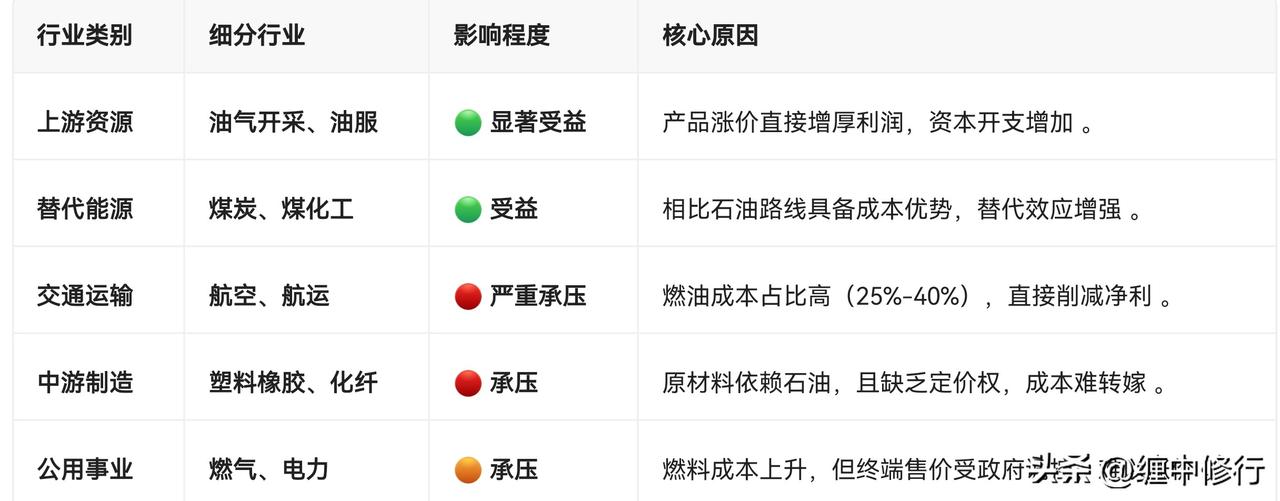 高油价利好和冲击的行业