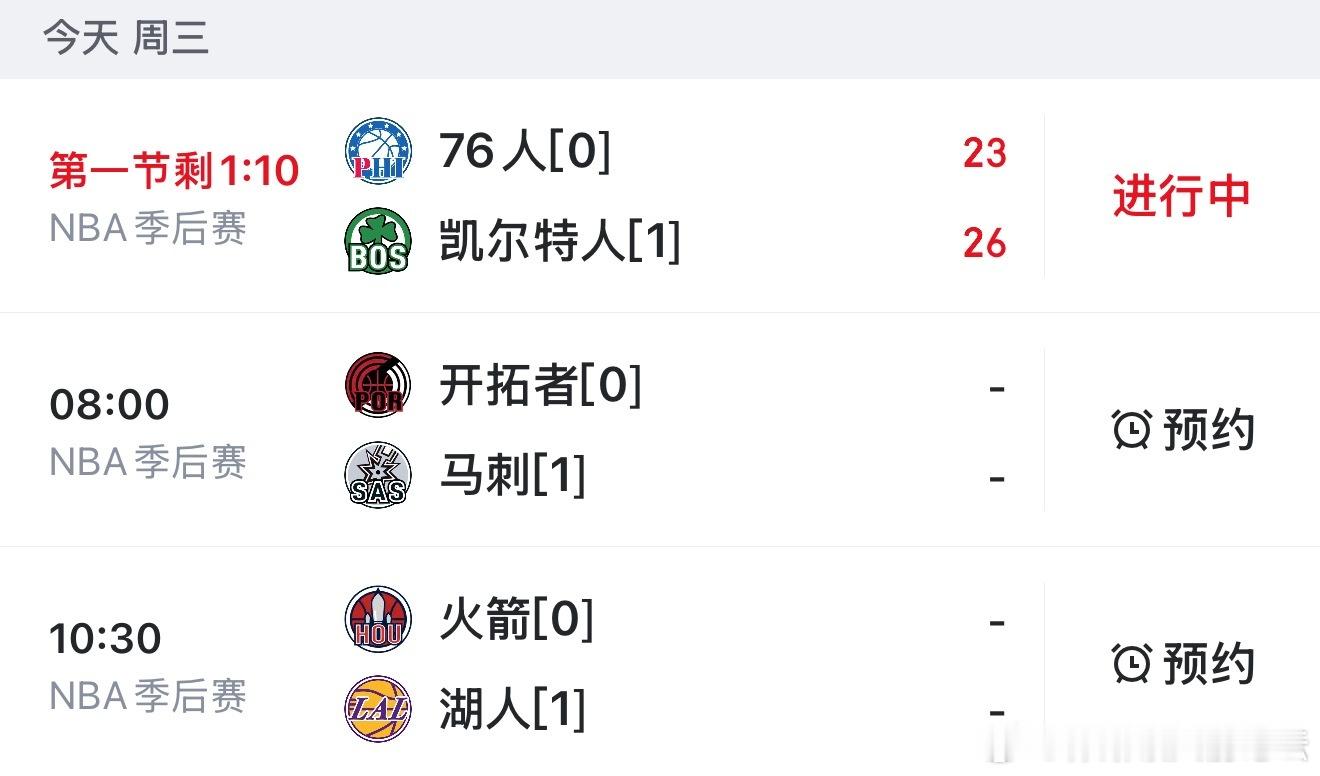今日三场NBA季后赛!都能看76人vs凯尔特人、开拓者vs马刺、火箭vs湖人📺直播看比赛:ez33.cc(浏览器输入)📺今日看球二:网页链接(复制到浏览器打开)