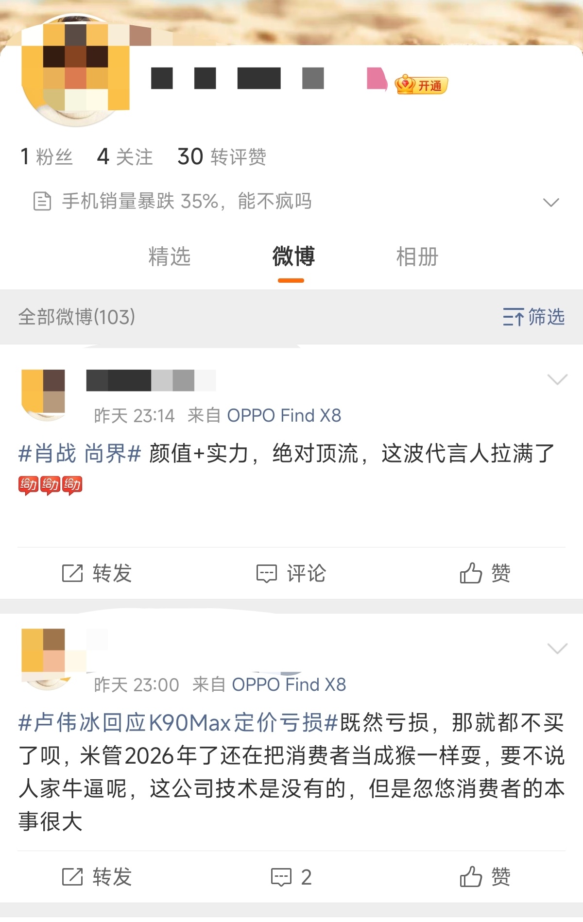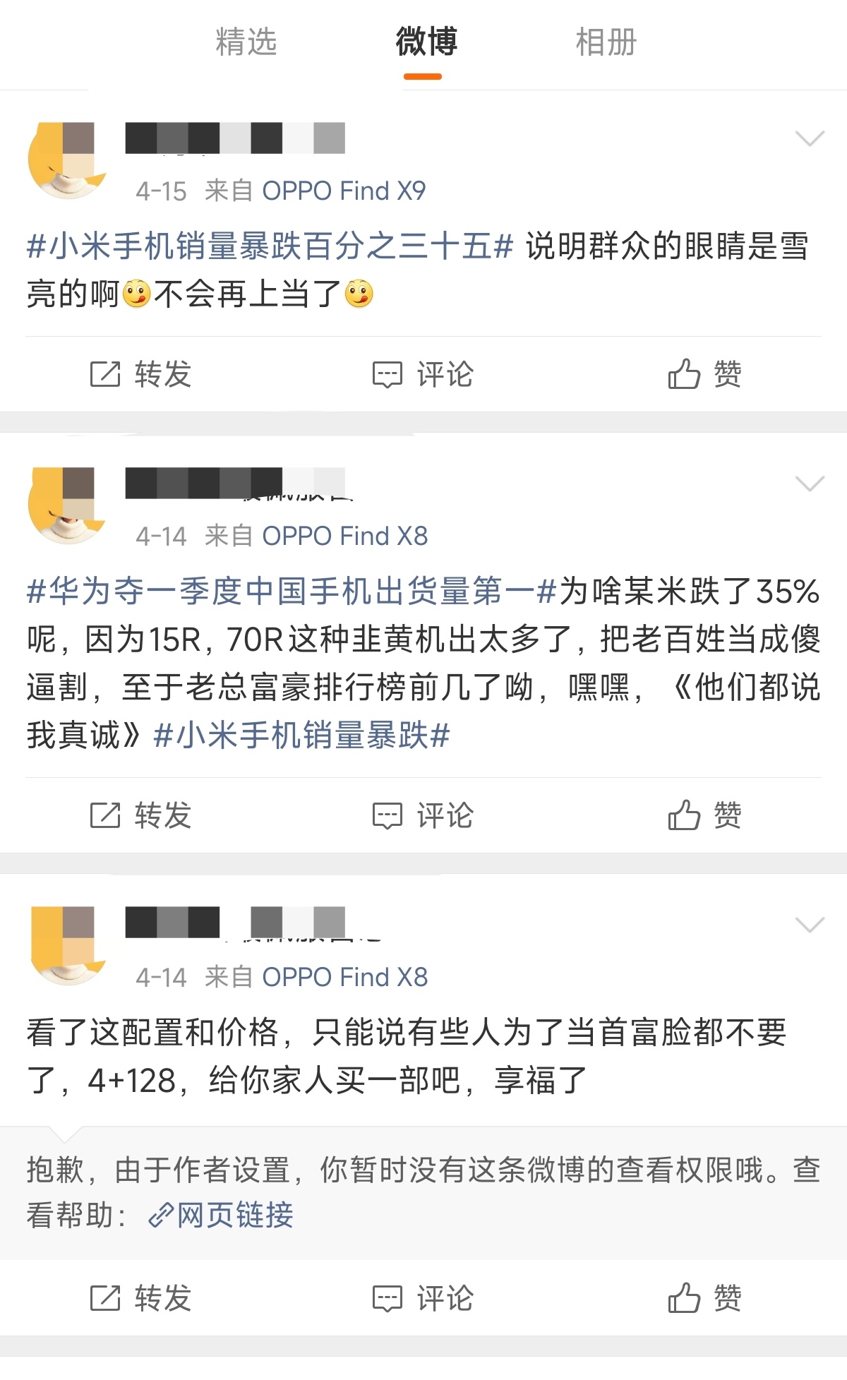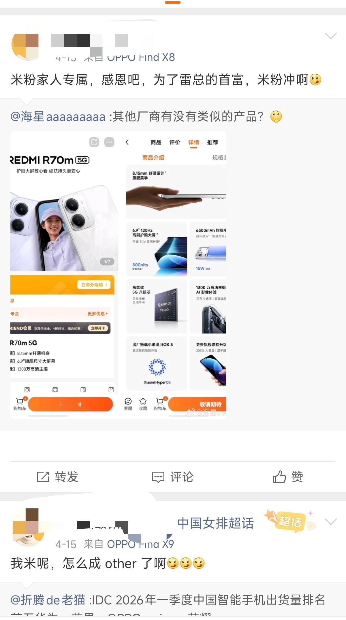 主页里面几乎全是有关于小米的内容,真心讨厌小米就远离小米好呗。