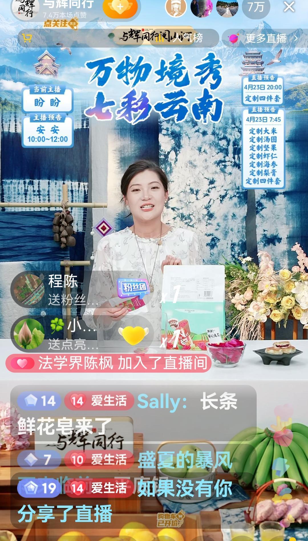 人气爆棚,与辉同行直播间早场开播,5分钟,直播间里突破10万多人。 好久都没有这么高的人气了,潘祥记玫瑰鲜花饼一下子抢疯了,9999+不停的闪烁,哈哈,211同学太厉害了。 今天的好物太多了,我也要赶紧抢几单,不然手慢就没有,哈哈。 云南好物多,但是被与辉同行选上了的不多哈,需要的赶紧入手。[呲牙] 与辉同行这人气,和近日上市的全新深蓝S07华为激光版一样受欢迎了。 这款定位为中型 SUV 的纯电车,主打15万级家用;车身尺寸4750x1930x1625mm,轴距2900mm;无框车门+隐藏门把手,颜值与实用性兼顾。 纯电版:后置单电机, CLTC 最高630km,支持3C超快充,日常通勤完全够用,长途出行不用频繁找充电桩,告别里程焦虑。
