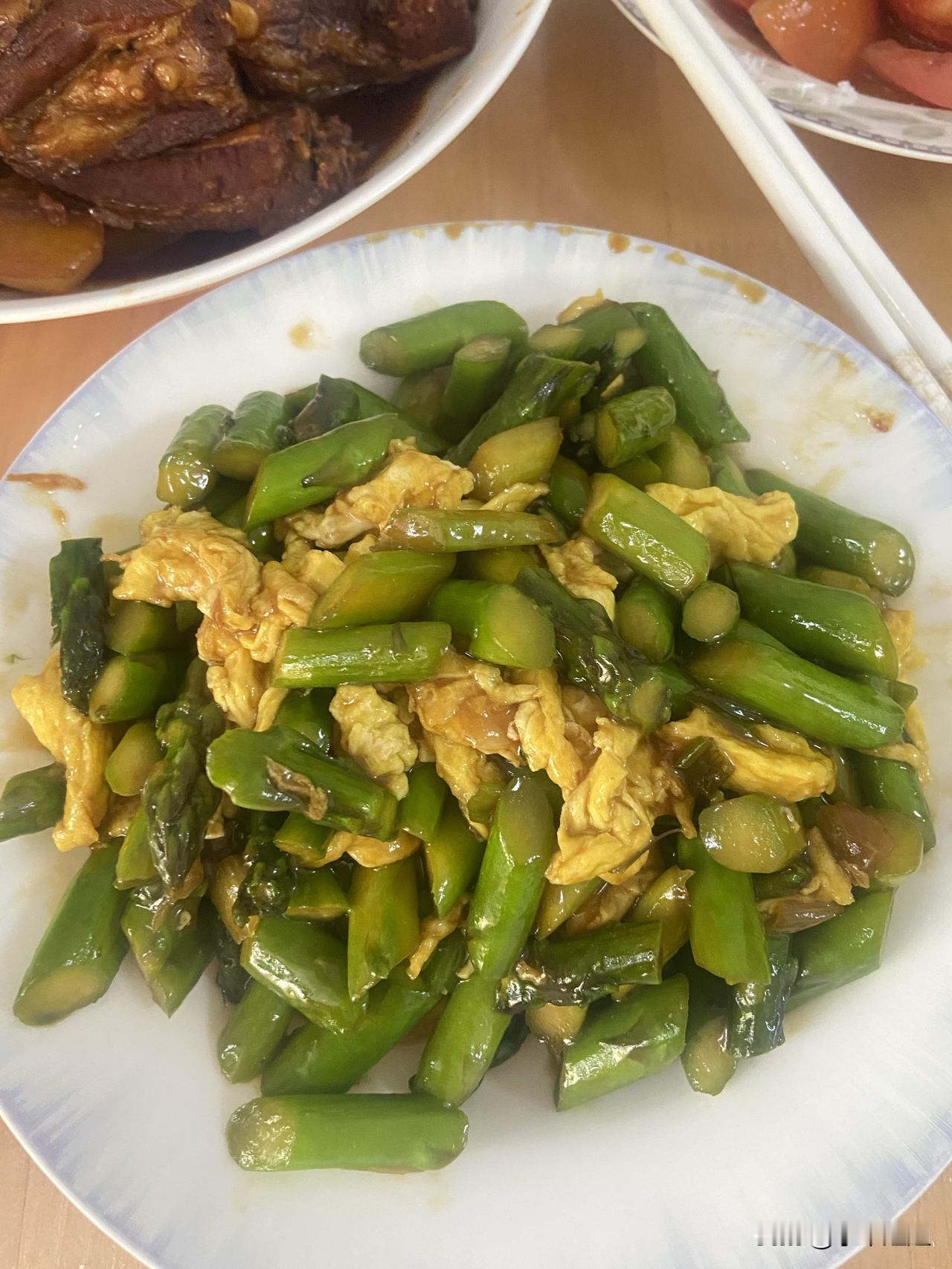 昨天晚餐,我家准备了三个菜。 芦笋炒鸡蛋,白糖拌西红柿,还有炖排骨。 闺女回到家,瞧见这桌饭菜,十分满意,直说:“都是我爱吃的!” 下班回到家,吃顿好饭,能消解一天工作的疲惫。 看到他们吃的高兴,我心里也愉快!