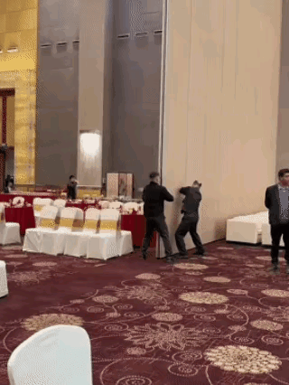 八年前在青岛某酒店就遇到这滑动板倒下来,还好当时晚上在搭舞台没多少人,只砸烂了两张桌子[笑哭]