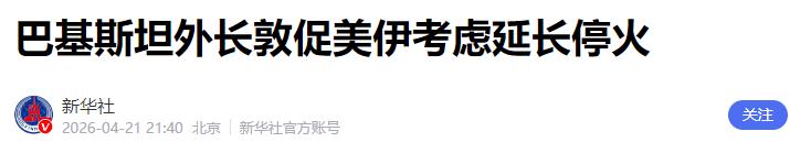 深夜坏消息,巴基斯坦发布重磅信息 据新华社伊斯兰堡4月21日刚刚发布的消息,巴基斯坦副总理兼外交部长达尔21日在会见美国驻巴基斯坦临时代办时,敦促美国和伊朗考虑延长停火,为对话和外交尝试提供机会。 单看这条消息,是希望地区局势缓和的好事,可仔细琢磨就能明白,这背后恰恰说明美国和伊朗的谈判遇到了重大困难,双方的矛盾已经到了很难调和的地步,也预示着在停火协议到期之前,美伊双方根本没办法达成协议,就算想谈成,难度也特别大。 在国际外交的常规逻辑里,要是两个国家的谈判进展顺利,核心争议问题都快要达成一致,距离签订正式协议只有一步之遥,根本不需要第三方国家出面,去提醒或敦促延长停火。 当事两国自己就会主动推进谈判节奏,按照协商好的步骤完成剩余磋商,停火的和平状态也会自然延续下去,不会出现需要别国出面喊话的情况。 只有当谈判彻底走进死胡同,双方谈不下去、谈不拢,甚至停火协议一到期就可能重新出现紧张对抗,第三方国家才会主动发声,希望能稳住局面、避免冲突升级。 这次巴基斯坦官方正式提出延长停火的呼吁,正好印证了美伊谈判的真实僵局。美国和伊朗的这一轮停火协议,是 4 月 8 日在巴基斯坦的斡旋下达成的,协议期限只有两周,马上就要在 4 月 22 日正式到期。 原本双方还计划在停火到期前,于巴基斯坦首都伊斯兰堡举行第二轮谈判,可直到 4 月 21 日,这场关键谈判都没有确定下来,伊朗方面甚至明确公开表示,拒绝参加这一轮原定的谈判。 在这样的紧急局面下,达尔作为巴基斯坦的副总理兼外交部长,才会在这个关键时间点,专门会见美方临时代办,传达延长停火的诉求。如果不是谈判彻底卡壳、毫无进展,他完全没有必要多此一举。 美国和伊朗的矛盾由来已久,不是这一次临时停火就能轻易化解的。在这两周的停火谈判期里,双方在多个核心问题上寸步不让,分歧没有丝毫缩小。 美国坚持要求伊朗彻底停止所有级别的铀浓缩活动,还要把伊朗境内的浓缩铀运出境外,同时要求伊朗放弃对霍尔木兹海峡的管控权,并且美方会继续维持对伊朗的海上封锁。 伊朗方面则坚决不接受这些要求,伊朗明确表示,和平利用核能是自己的合法权利,绝对不会把浓缩铀交给美国,也不会放弃对霍尔木兹海峡的管辖权,只要美国不解除海上封锁,伊朗就不会参与任何谈判。这些涉及核心利益的问题,双方谈了十几天,始终各执一词,根本找不到双方都能接受的平衡点。 巴基斯坦作为中东地区的重要国家,自身的安全和经济与美伊局势紧紧绑在一起。巴基斯坦国内的石油、天然气资源匮乏,近八成的原油都要从中东地区进口,霍尔木兹海峡是能源运输的关键通道,一旦美伊停火到期重启冲突,这条航道就会受阻,国际油价会大幅上涨,巴基斯坦的能源供应和国内经济都会遭受严重冲击。 除此之外,巴基斯坦和伊朗还拥有漫长的边境线,美伊冲突一旦升级,很容易出现外溢效应,直接威胁巴基斯坦的边境安全。所以巴基斯坦迫切希望美伊延长停火,避免地区局势恶化,可这份迫切的诉求,也恰恰坐实了美伊谈判陷入困境、到期前无法达成协议的事实。 过去这两周的停火期里,美伊的谈判状态一直是各说各话,没有任何实质性进展。美国方面偶尔会释放谈判接近成功的信号,可伊朗方面总会立刻出面否认,双方的表态完全相悖。伊朗已经明确做好了停火到期后的应对准备,态度十分强硬。 美国方面也没有让步的意思,甚至公开表示,如果停火到期仍未达成协议,几乎不会再延长停火时间,还会恢复相应的军事行动。双方都坚守自己的立场,没有任何妥协的迹象,谈判从一开始就充满阻碍,到停火即将到期时,更是完全看不到达成协议的可能。 在国际事务中,第三方国家出面敦促当事国延长停火,从来都不是无缘无故的举动。只有当两个当事国无法自行推进谈判,矛盾无法调和,谈判濒临破裂的时候,周边利益相关的国家才会出面调解、发声呼吁。 巴基斯坦这次的外交行动,就是对美伊谈判困境最直接的证明。美伊双方都把核心利益放在首位,不肯在关键问题上退让,临时停火原本是为了给谈判创造和平环境,可直到停火期限将至,双方依旧没有缩小分歧,谈判的目标完全没有实现。 很多中老年朋友可能只看到巴基斯坦呼吁和平的善意,却忽略了消息背后的现实问题。如果美伊之间的谈判真的进展顺利,快要达成一致,巴基斯坦根本不需要专门出面,去敦促双方延长停火。 正是因为谈判遇到了无法快速解决的阻碍,双方的矛盾已经到了难以调和的程度,在停火协议到期之前根本没有办法达成协议,达尔才会在这个节骨眼上,向美方提出这样的诉求。就算这次美伊同意延长停火,以双方目前的分歧来看,想要在短时间内谈拢所有问题,依旧是非常困难的事情。